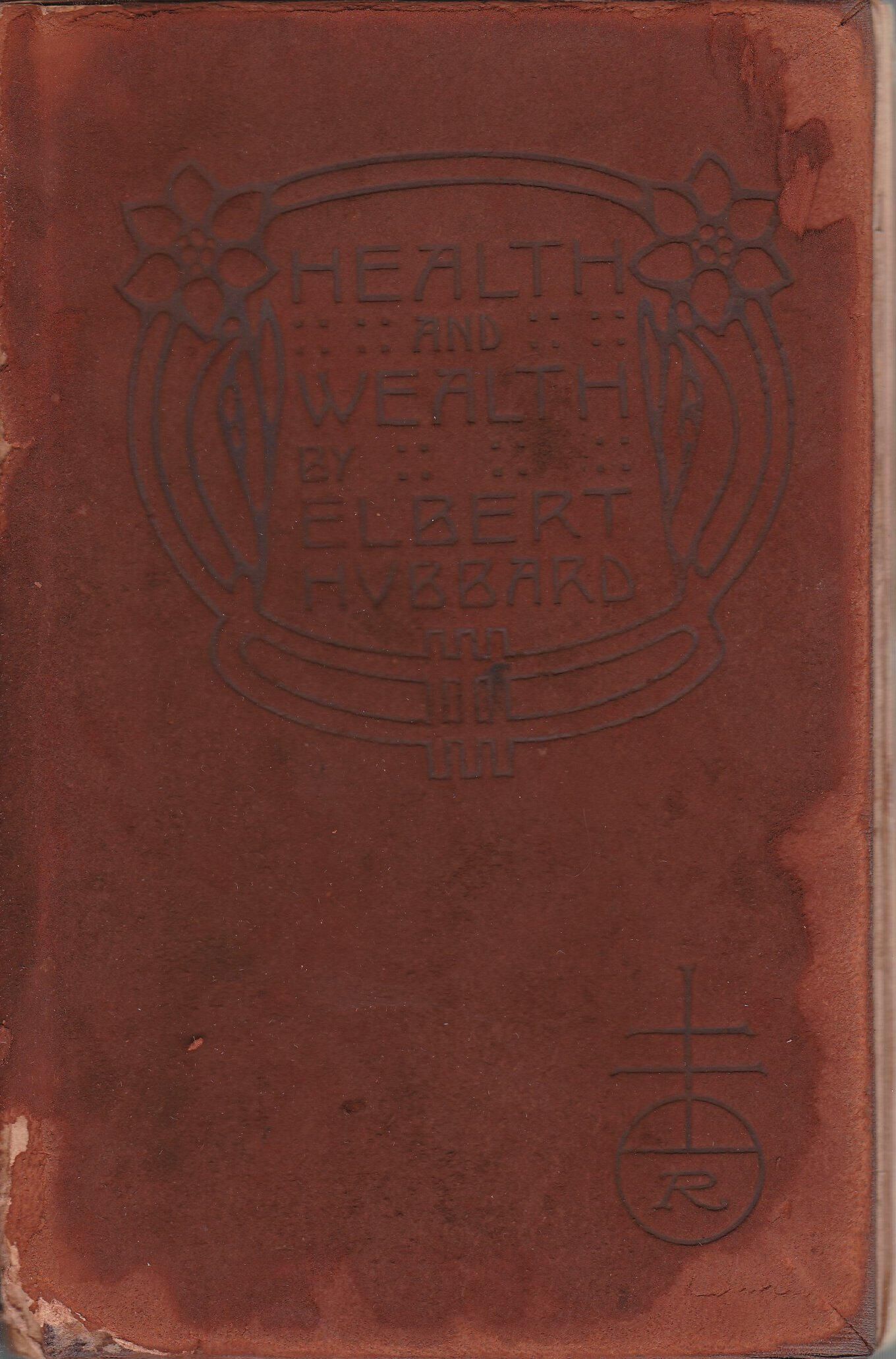 4 1/2 x 7 with leather cover that is in pieces and deteriorating. Written by Elbert Hubbard