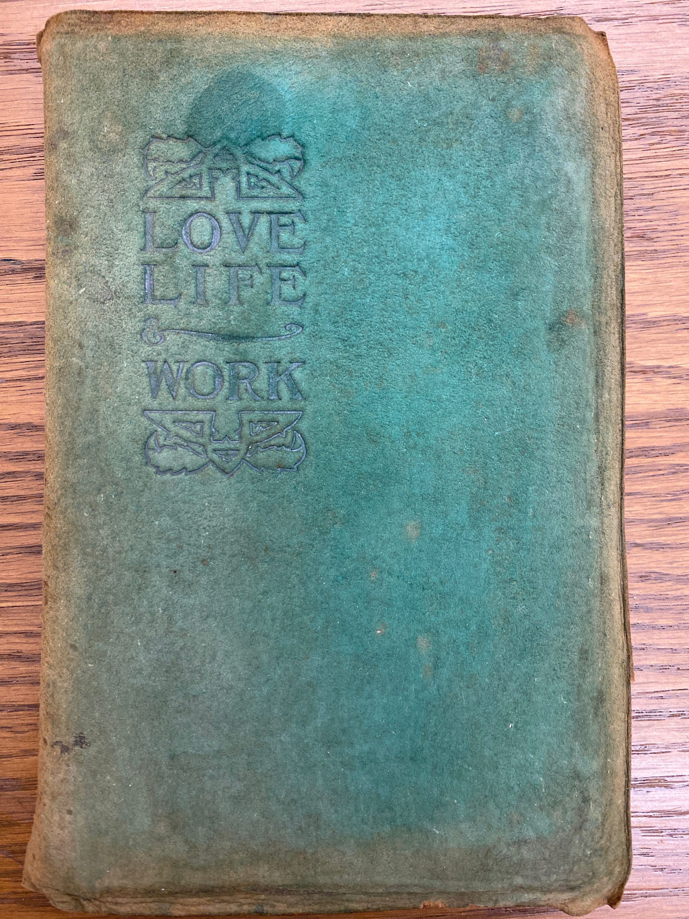 Green suede cover in poor but stable condition Inside cover page written on with date of 1940 One of the first leaves inscribed with the name Phila Baldwin in pencil