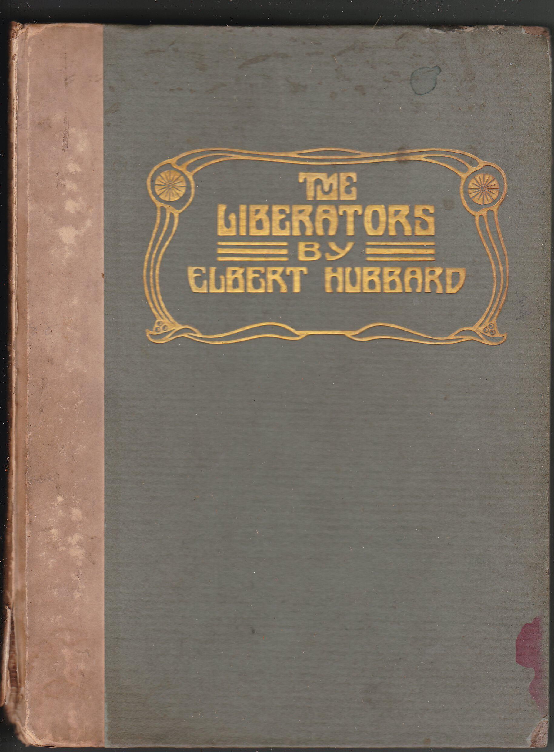 Hardcover book - The Liberators by Elbert Hubbard (1919). Sage green cover. 1st Copy. Poor condition. Donated by Mary Ryder of Books to Benefit