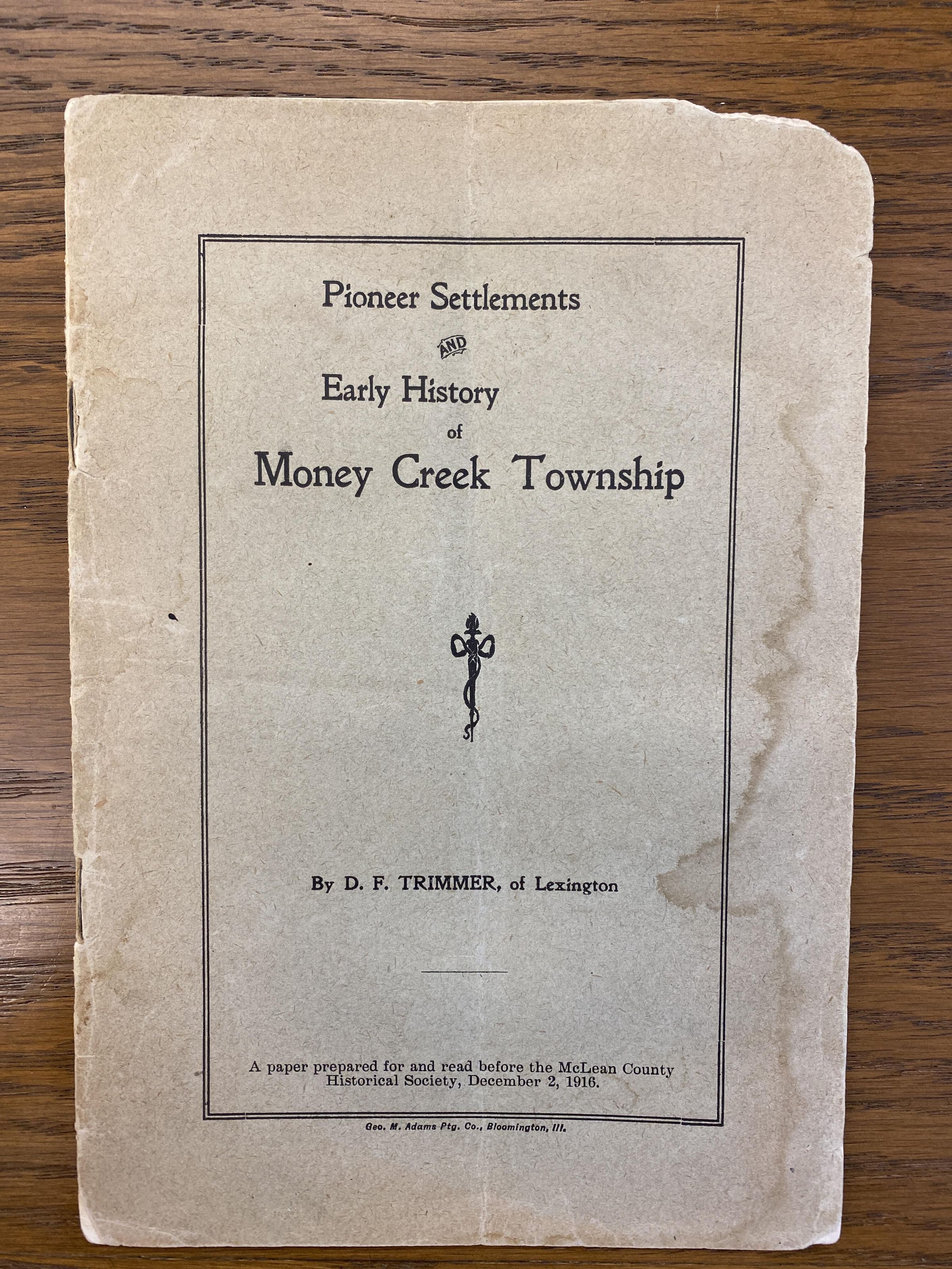 Pioneer Settlements and Early History of Money Creek Township by D. F. Trimmer of Lexington. A Paper prepared for and read before the McLean County Historical Society, December 2, 1916.