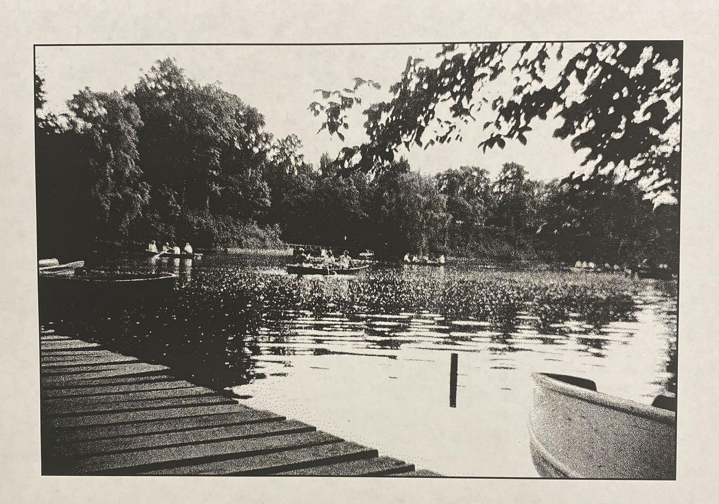 East Bay Camp, Lake Bloomington. The boating dock and buddy system boating at the FHA Annual Leadership Training Camp.1952.