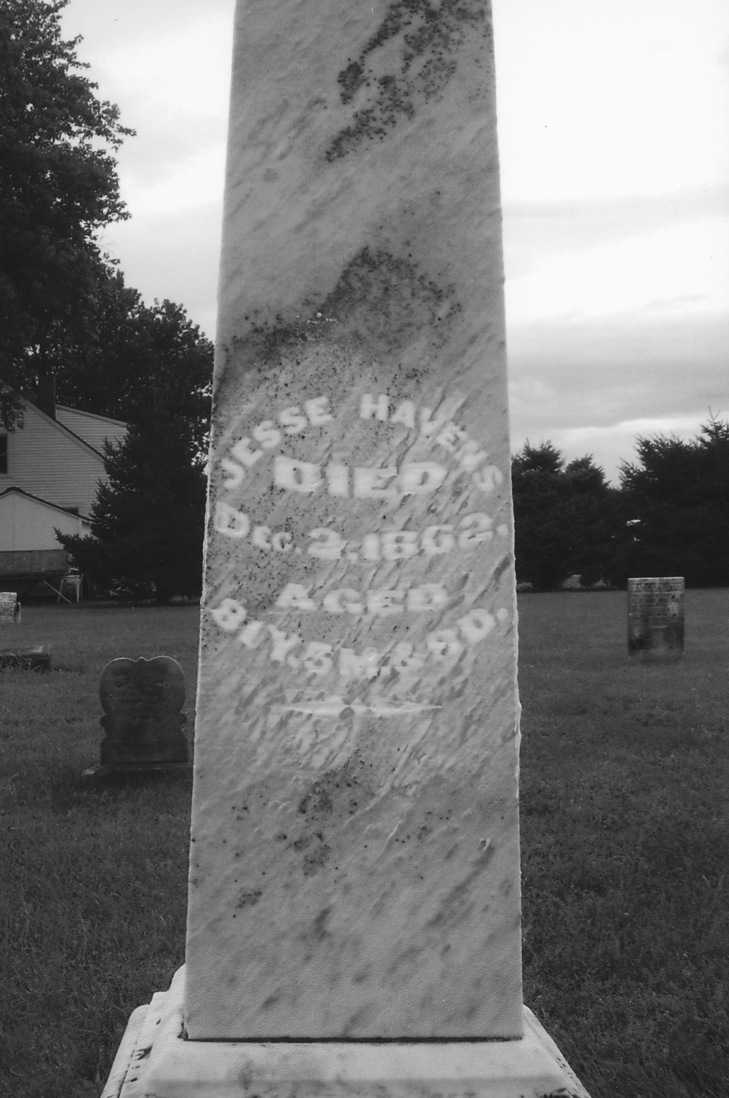 This is a photograph of Jesse Havens Gravestone in the West Hudson Cemetery