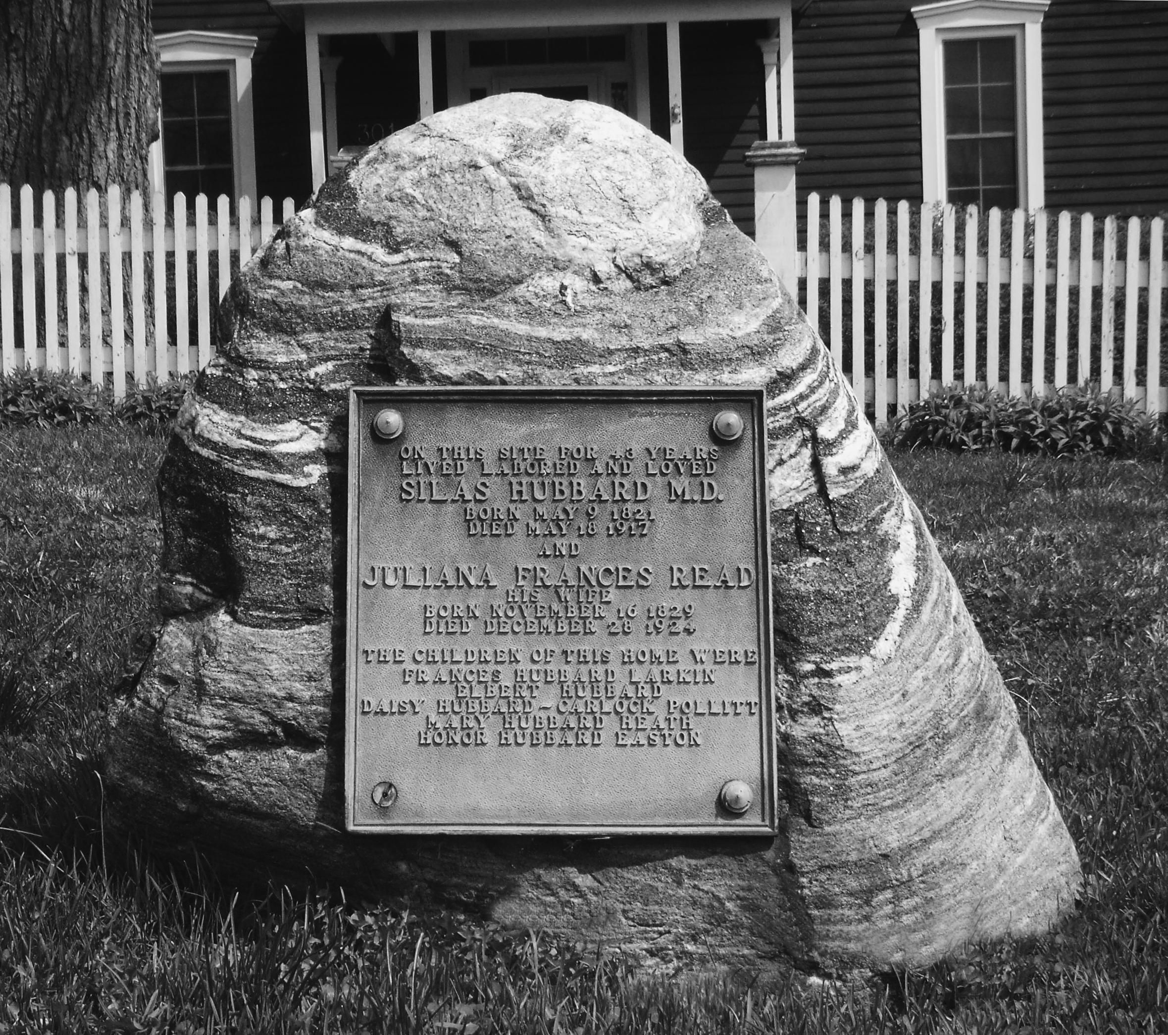 A plaque placed in front of the Hubbard home in tribute to Dr. Silas Hubbard.