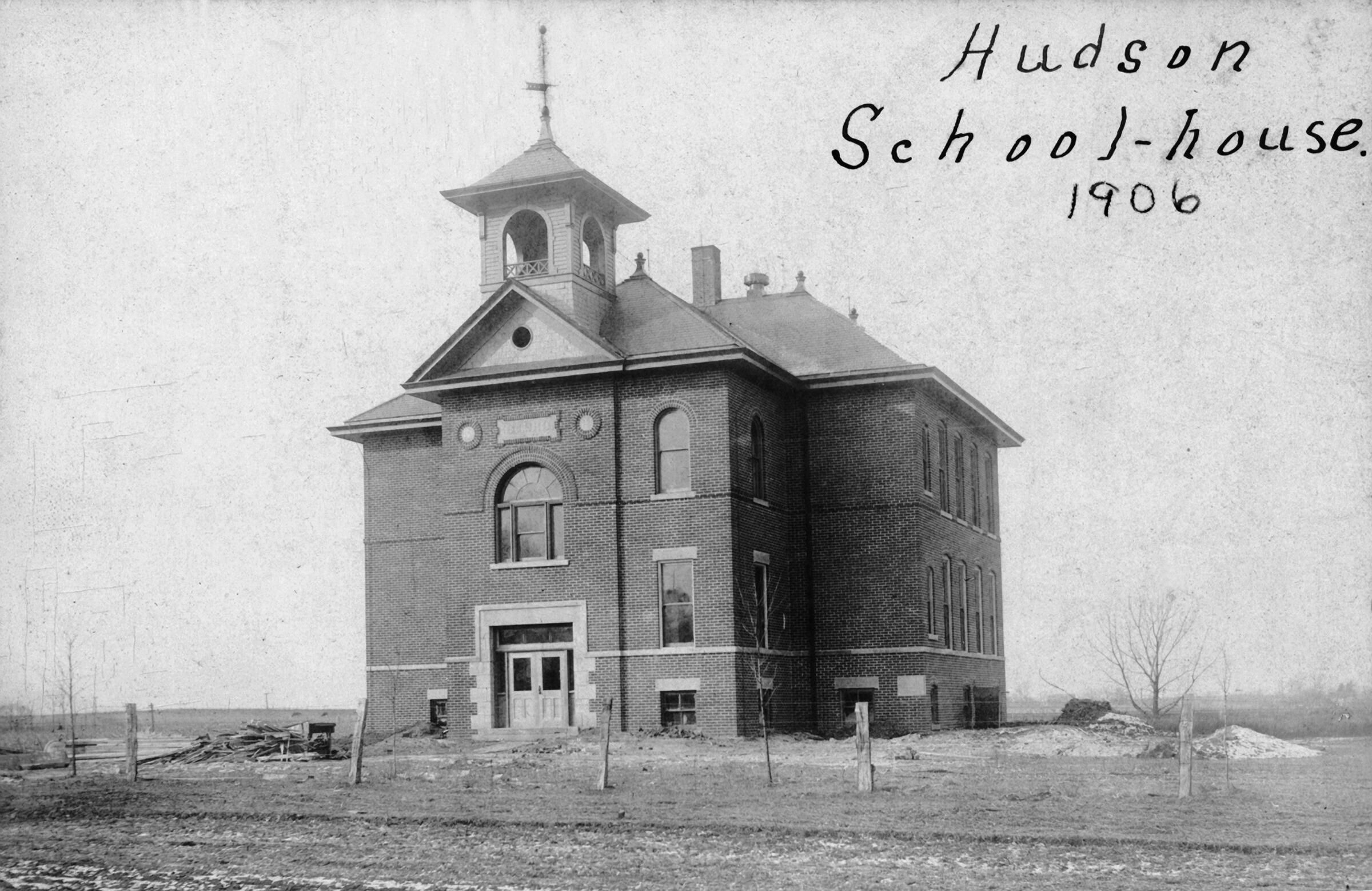 Hudson's 3rd school house was built in 1906 for $8,700 on a lot costing $1,200. Mr. Buckley and J.B. Brown led the effort to move the school from the cemetery to a more suitable location farther west in block 21, increasing its size. The new two-story brick building had four rooms and a basement. Primary classes were on the first floor with upper grades on the second floor. In 1907 two years of high school was offered.