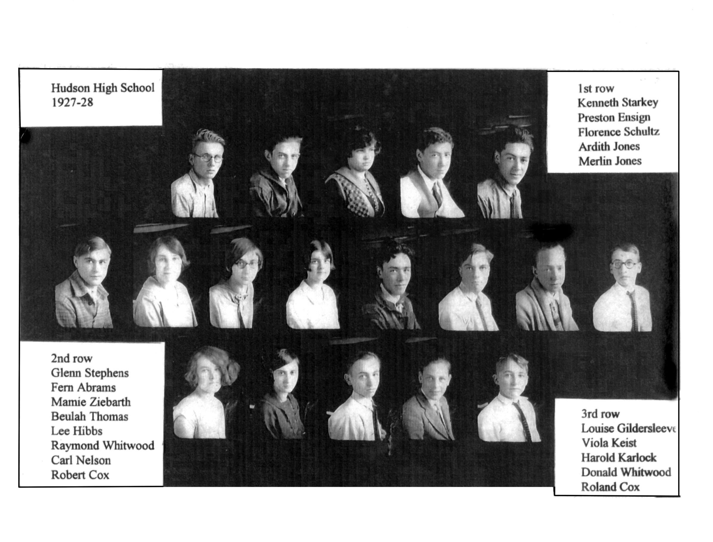 Hudson had a two year high school from 1907 to 1934. This picture is of the1927 and 1928 class.