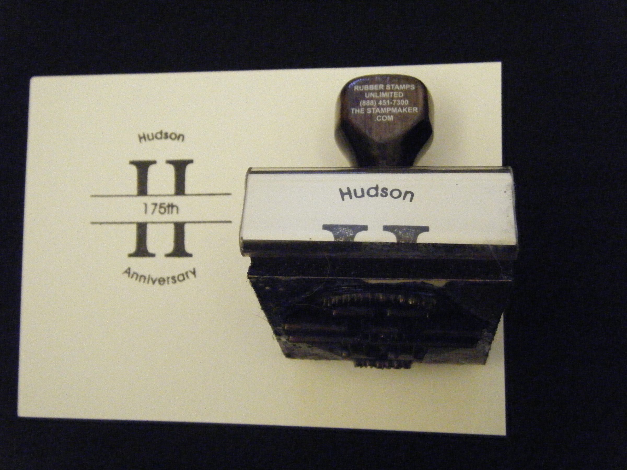 Rubber Stamp used for the History Scavenger Hunts for the 4th and 5th grades from the Hudson Elementary School promoting Hudson 175