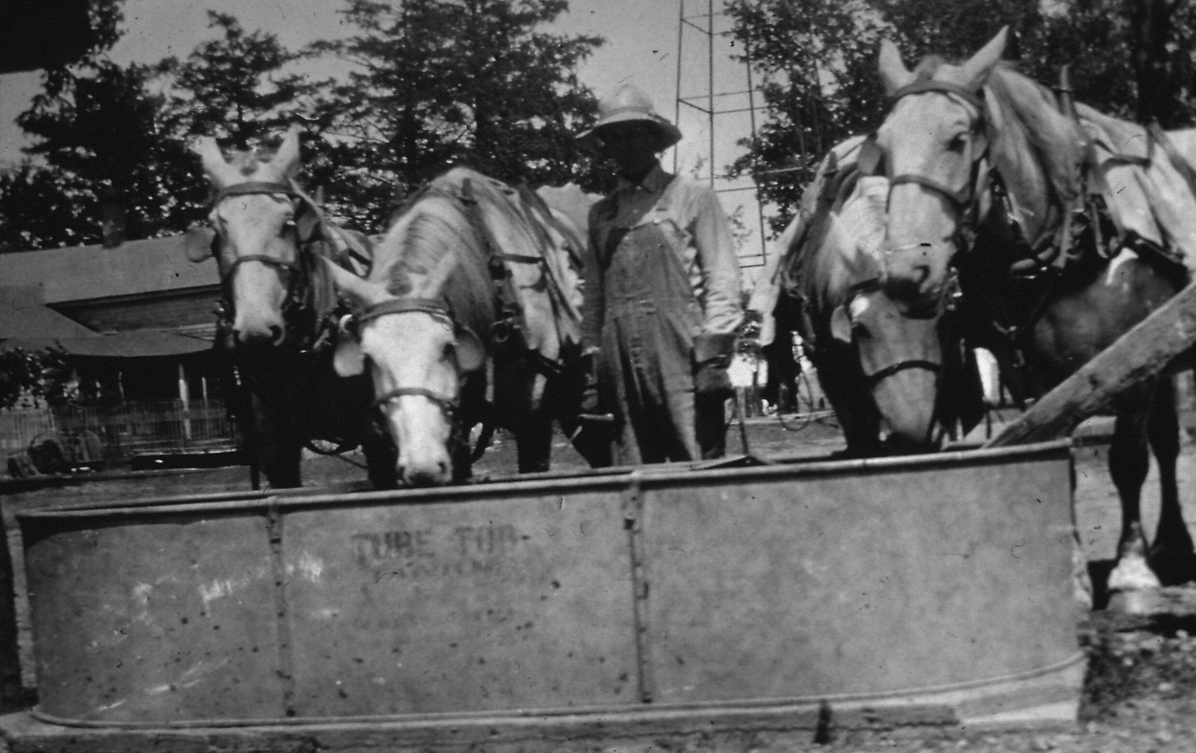 A photograph of horse drinking on the Ziebarth farm