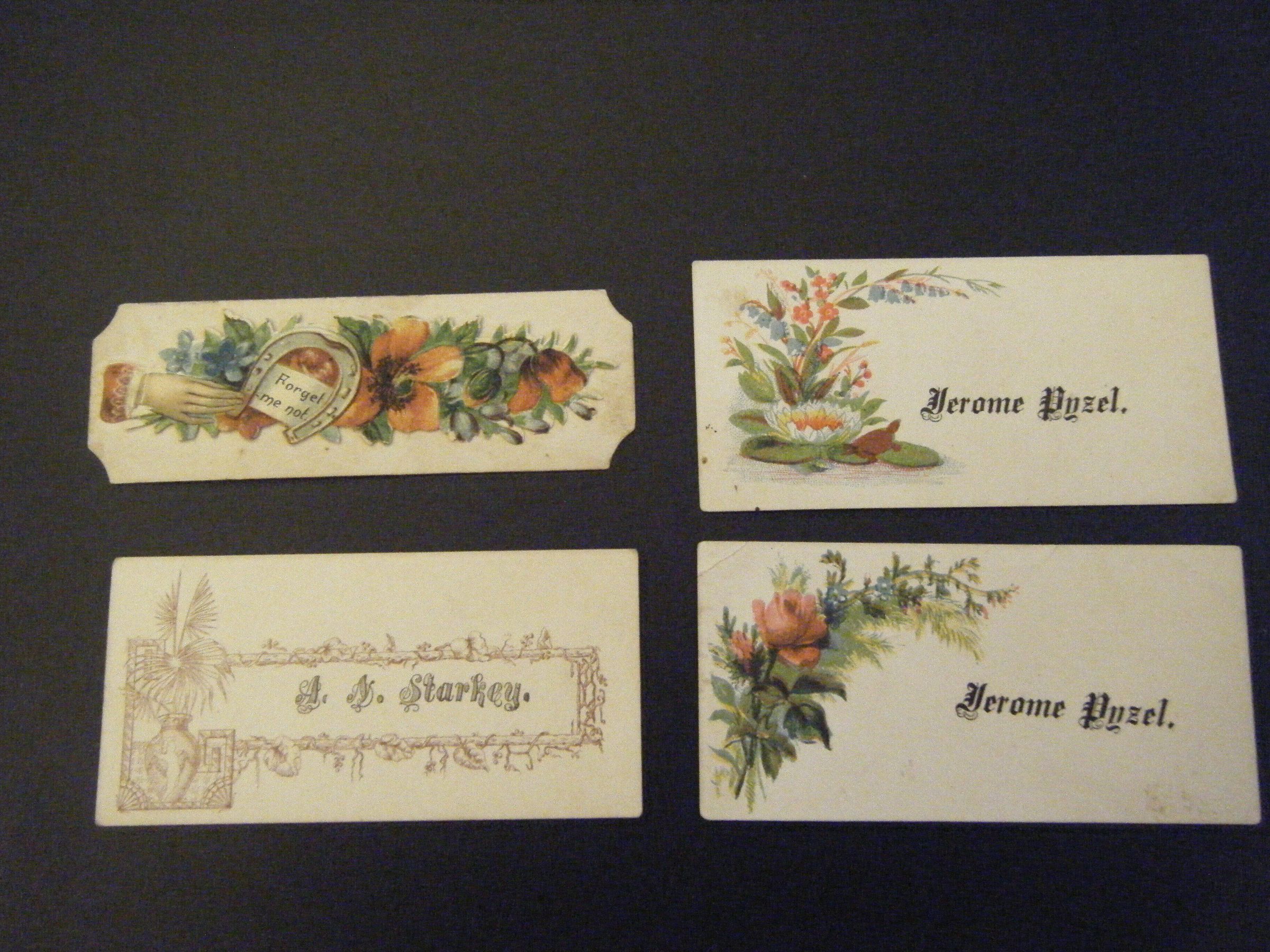 Set of five calling cards. Jerome Pyzel (3), A.N. Starkey, Roy E. Baber.