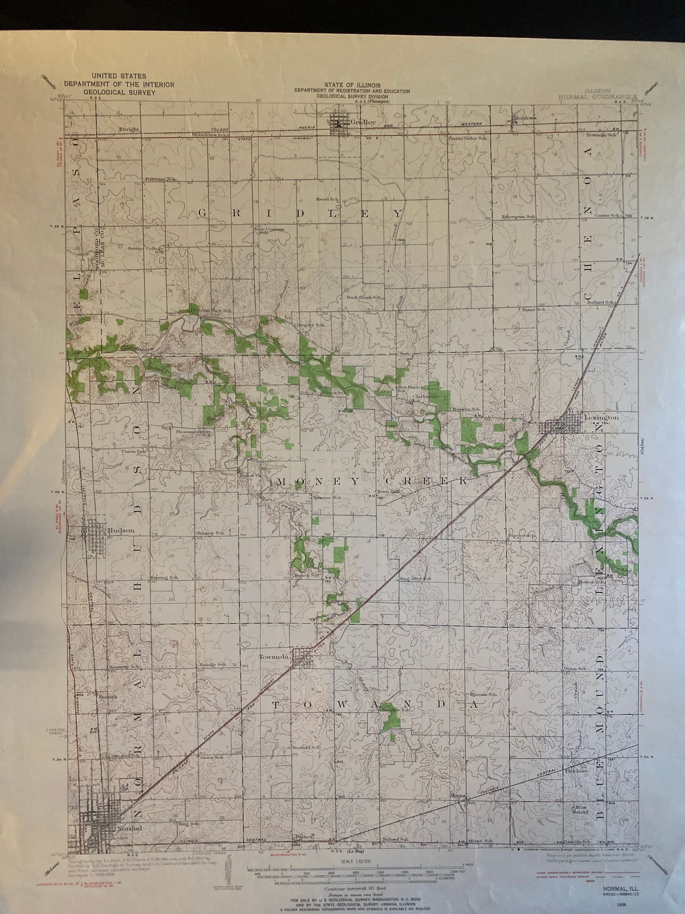 1930 map of Normal, IL Quadrangle showing Hudson. Approximately 15x20 inches.