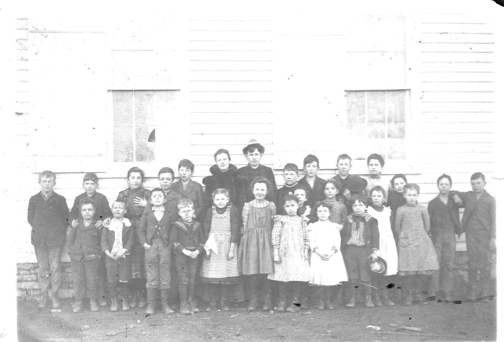 Black and white school photo that says "tallest in back row is John W. Humphries."