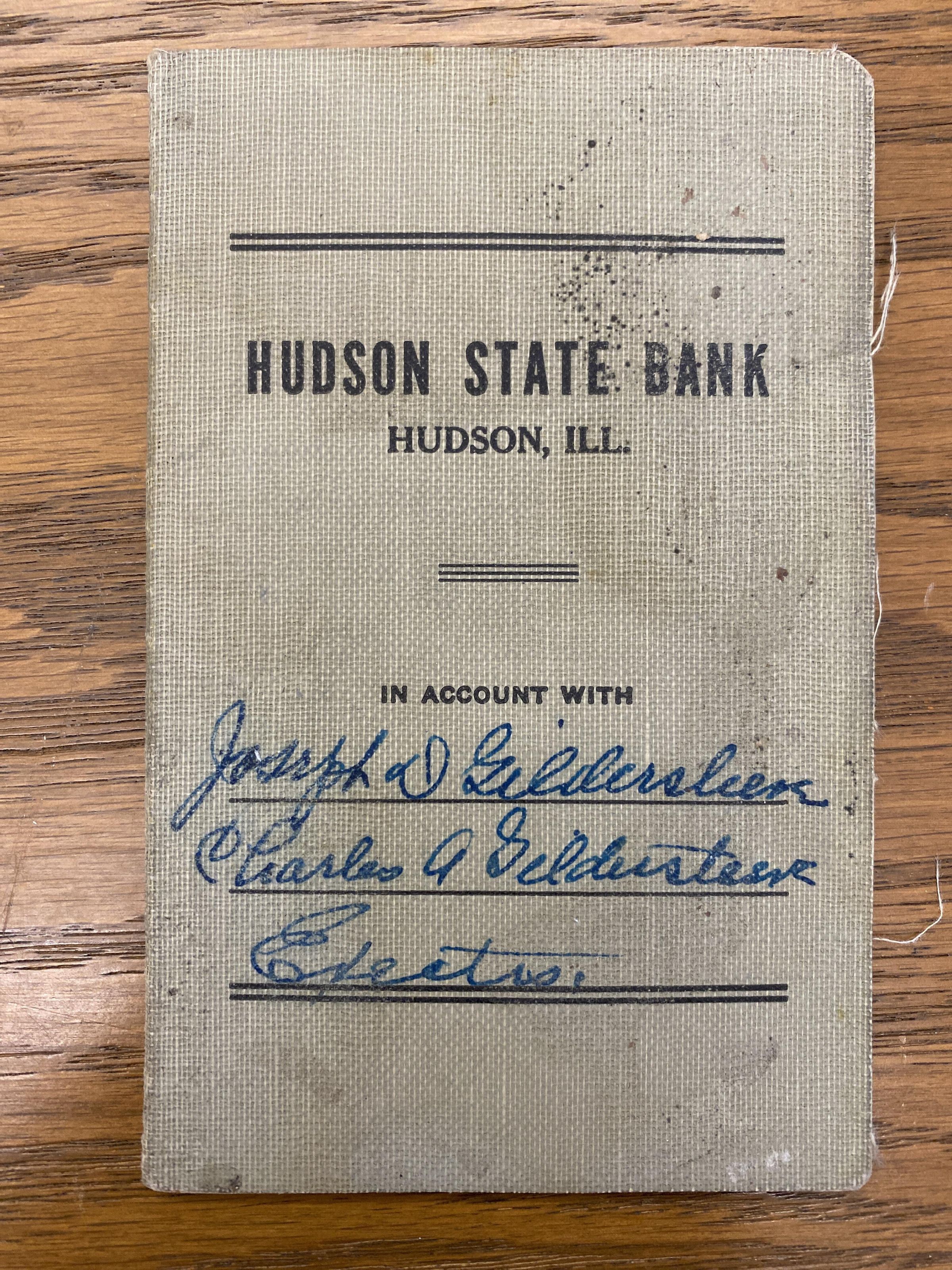 3 1/2" x 5 1/2" bank book for Hudson State Bank. Some enries for 1929-1930. Joseph D. Gildersleeve and Charles A. Gildersleeve names on front of book.