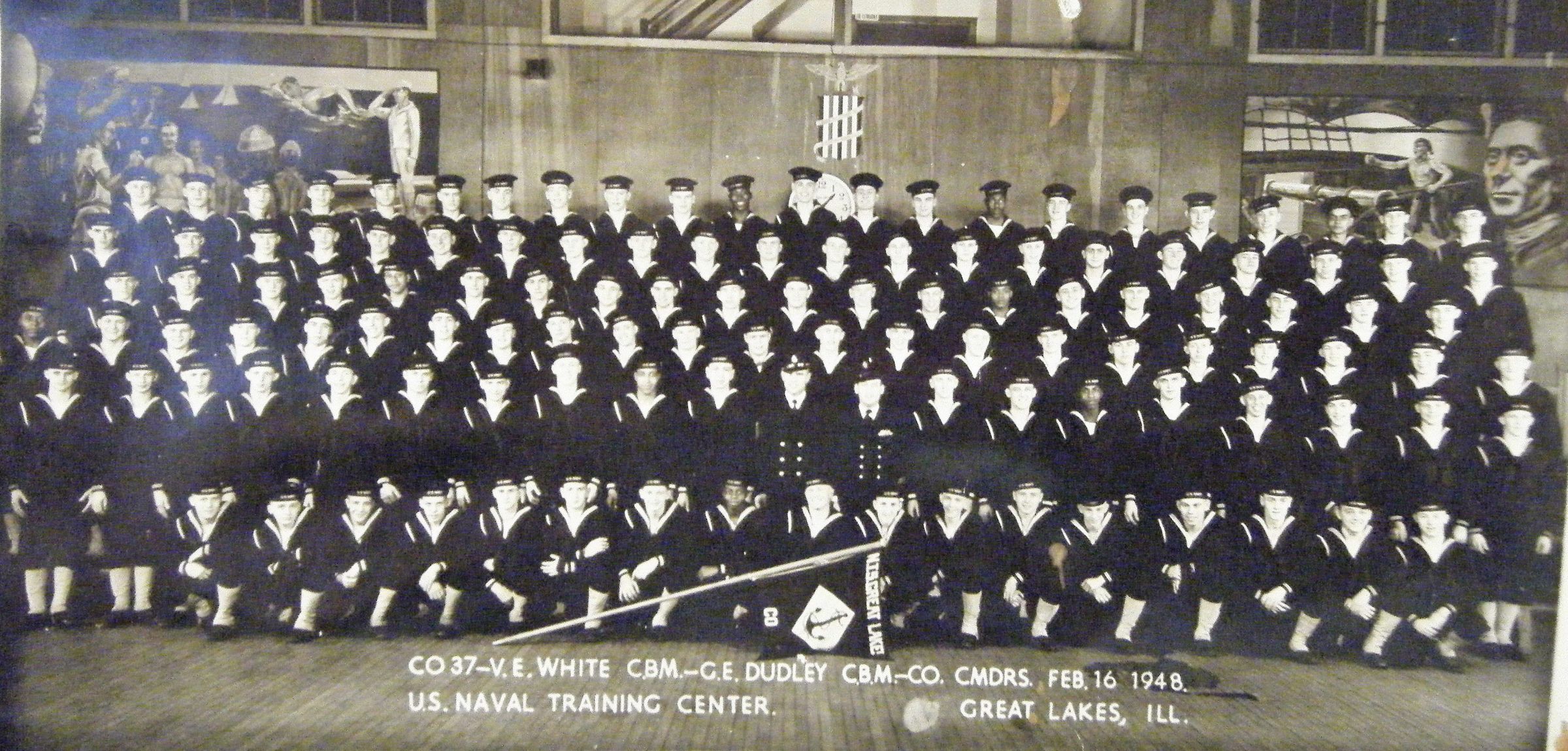 Photo of 2nd Platoon Co. 37 - February 16, 1948 U.S. Naval Training Center, Great Lakes, IL Hudson resident George Prunty is pictured (top row, third from the left)