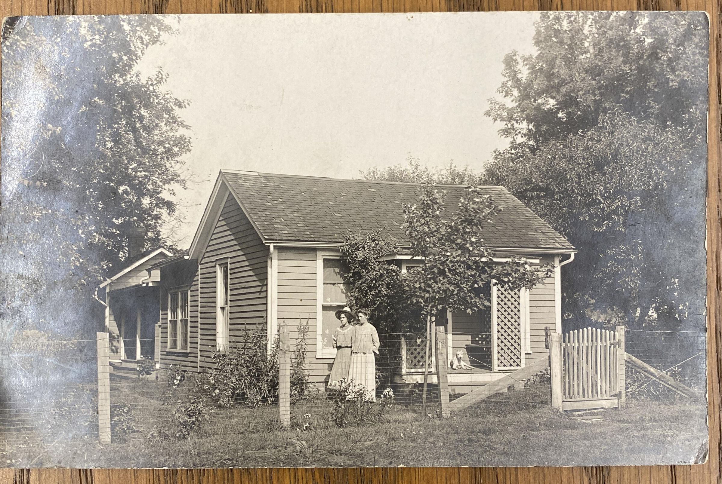 3 1/2 x 5 1/2 inch black and white post card of two women standing in front of the Hitch House. The card was supposedly donated by Jane Kurlitz who was related to the Hitch family.