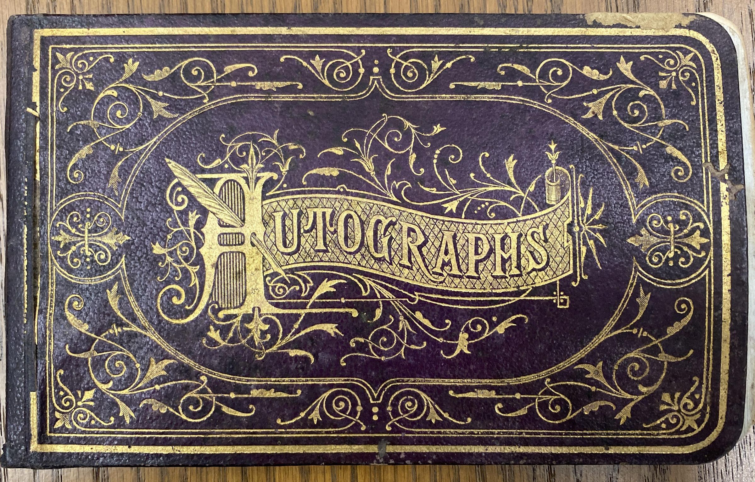 Autograph book believed to belong to Laura Burtis about 1878 to 1886.