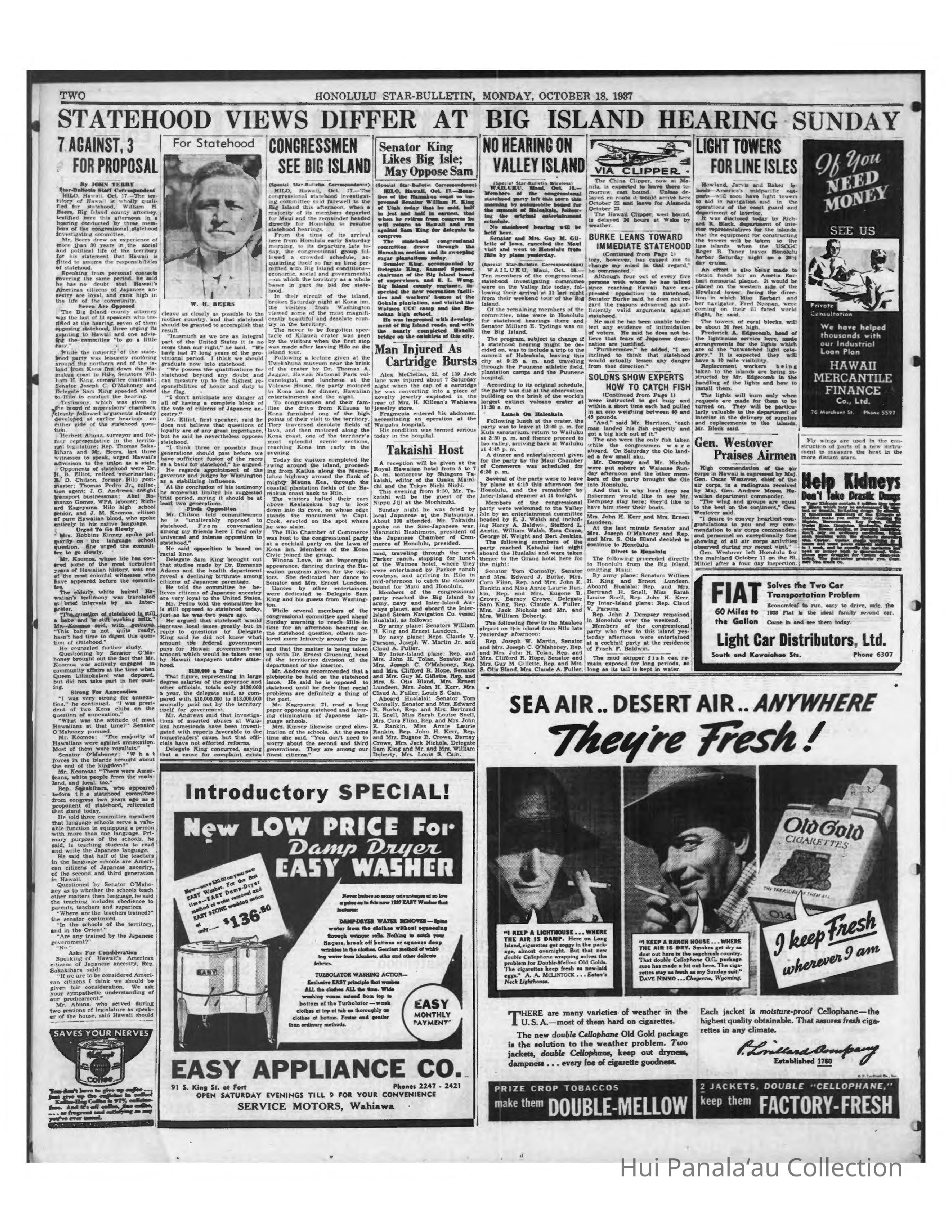 Newspaper: Honolulu Star-Bulletin, Oct 18, 1937. Details of light tower construction on Line Islands.Publication Details
