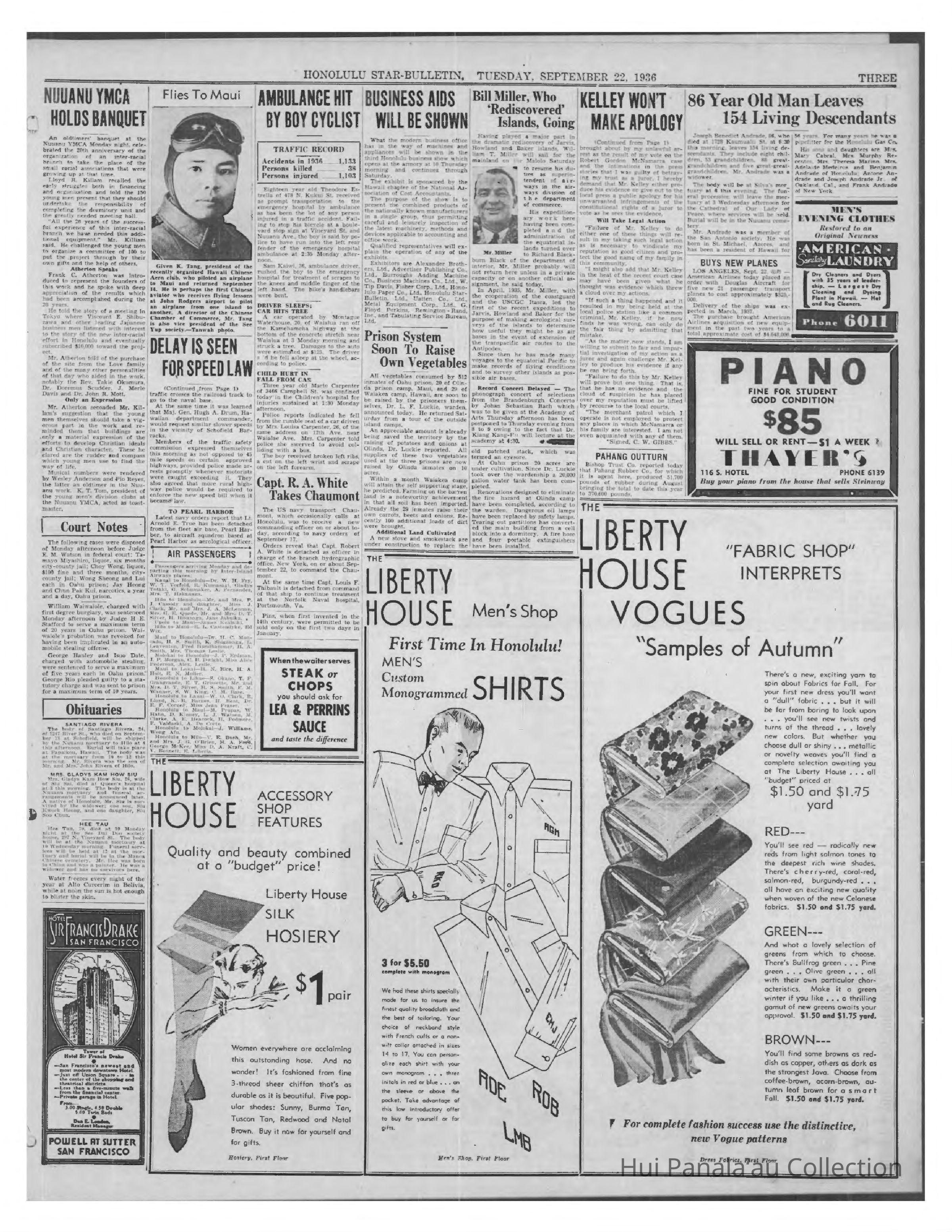 Newspaper: Honolulu Star-Bulletin, Sep 22, 1936. W. T. Miller steps back from overseeing expeditionary work with Line Islands.Publication Details