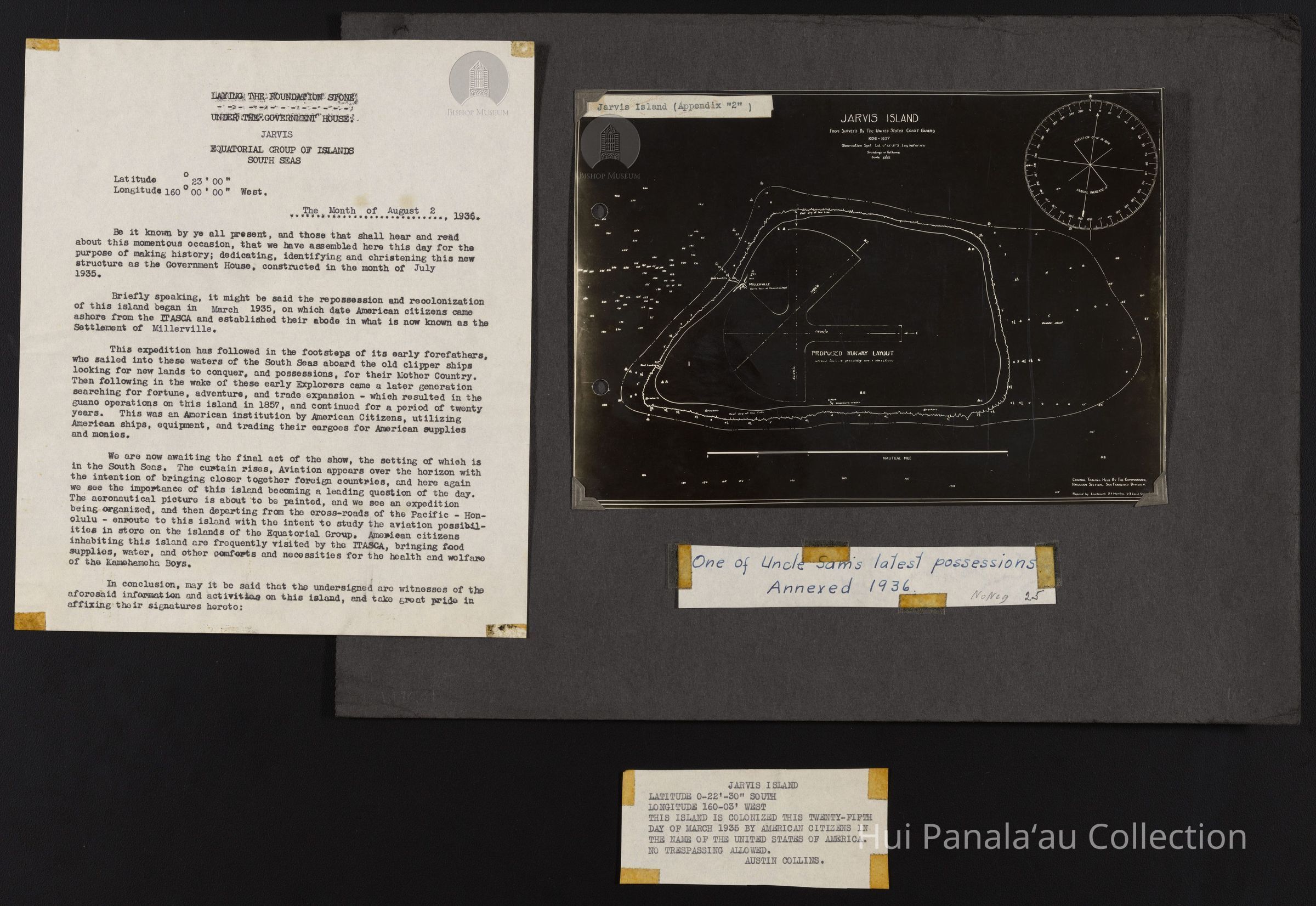 Typescript titled “Laying the Foundation Stone Under the Government House. Jarvis, Equatorial Group of Islands, South Seas” dated “The Month of August 2, 1936”