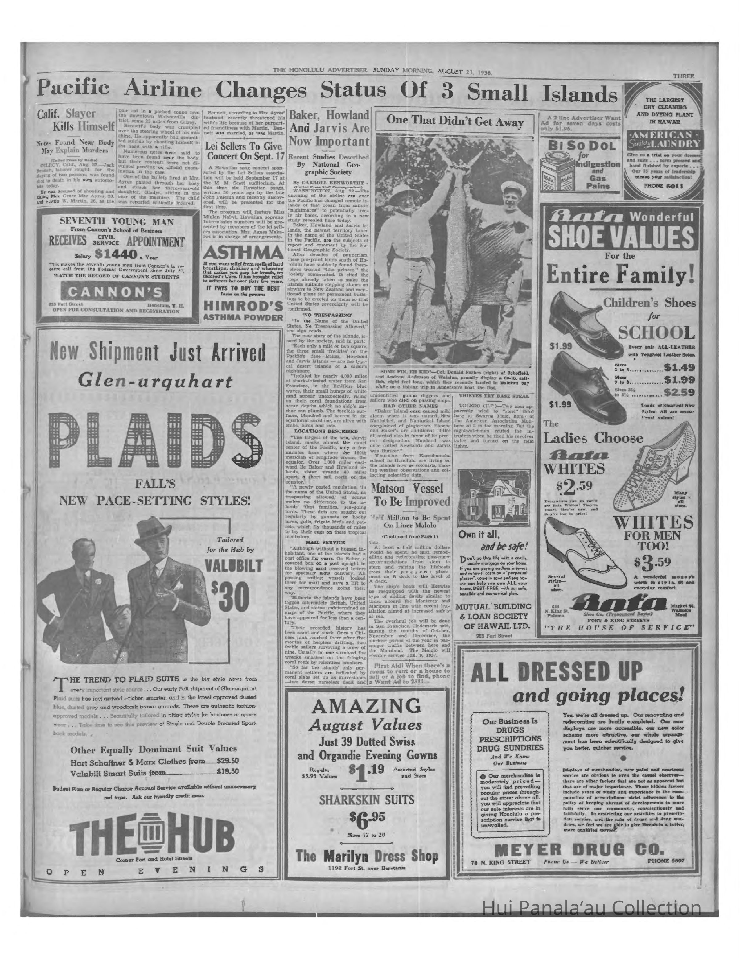 Newspaper: Honolulu Advertiser, Aug 23, 1936. Description of Baker, Howland, and Jarvis Island.Publication Details