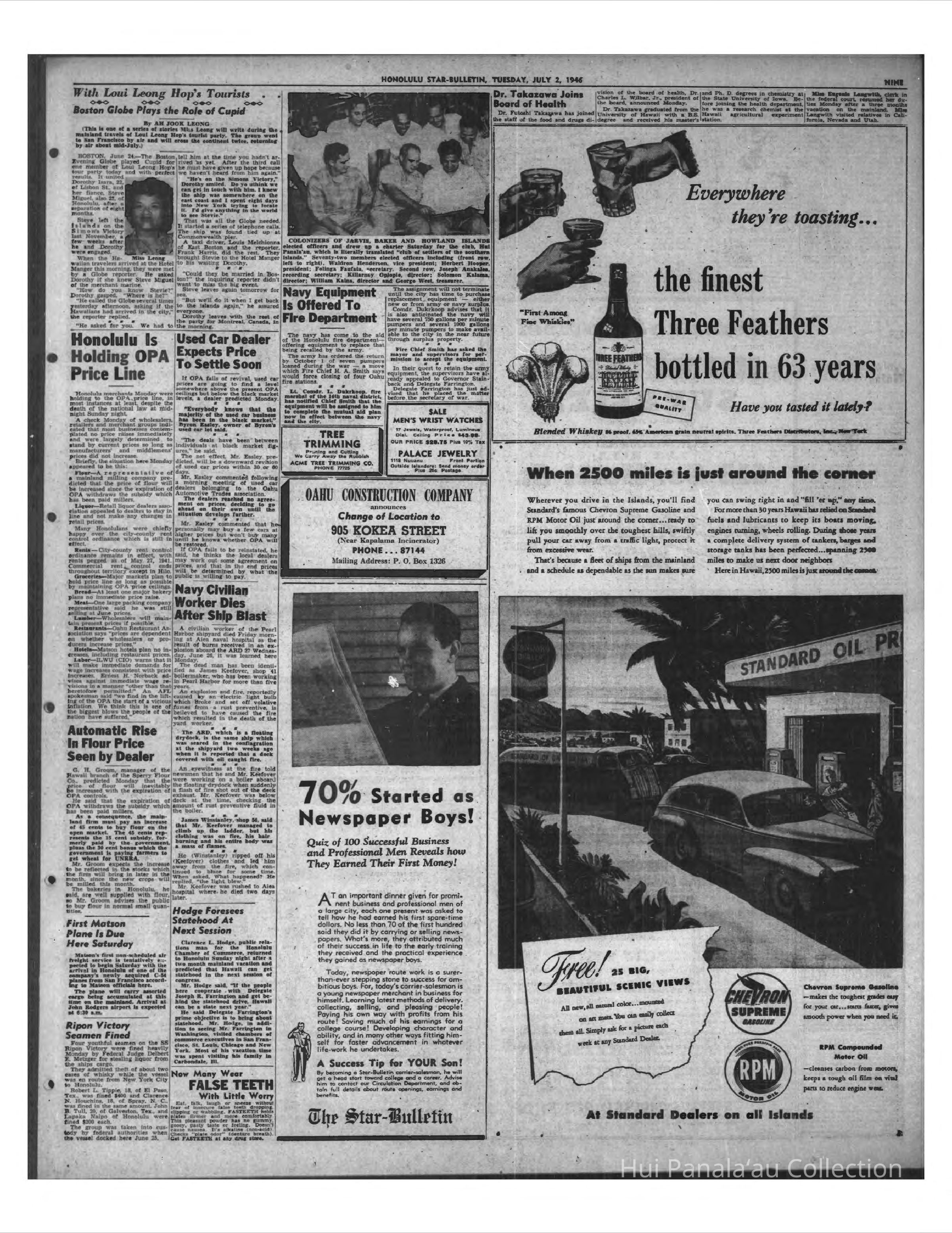 Newspaper: Honolulu Star-Bulletin, Jul 02, 1946. Description of photograph which depicts some elected officials of Hui Panala'au.