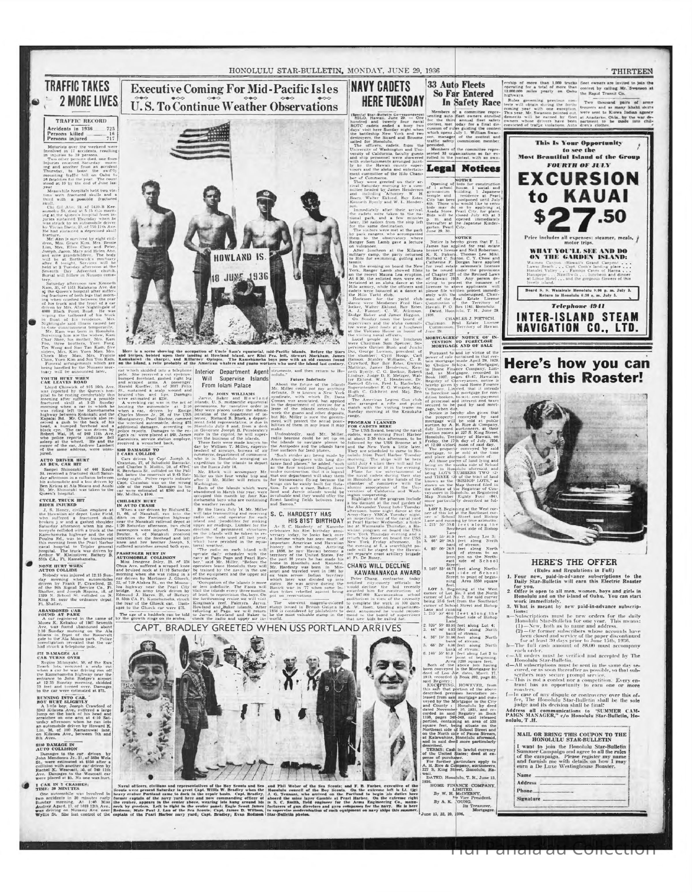 Newspaper article from the Honolulu Star-Bulletin, Jun 29, 1936Publication Details