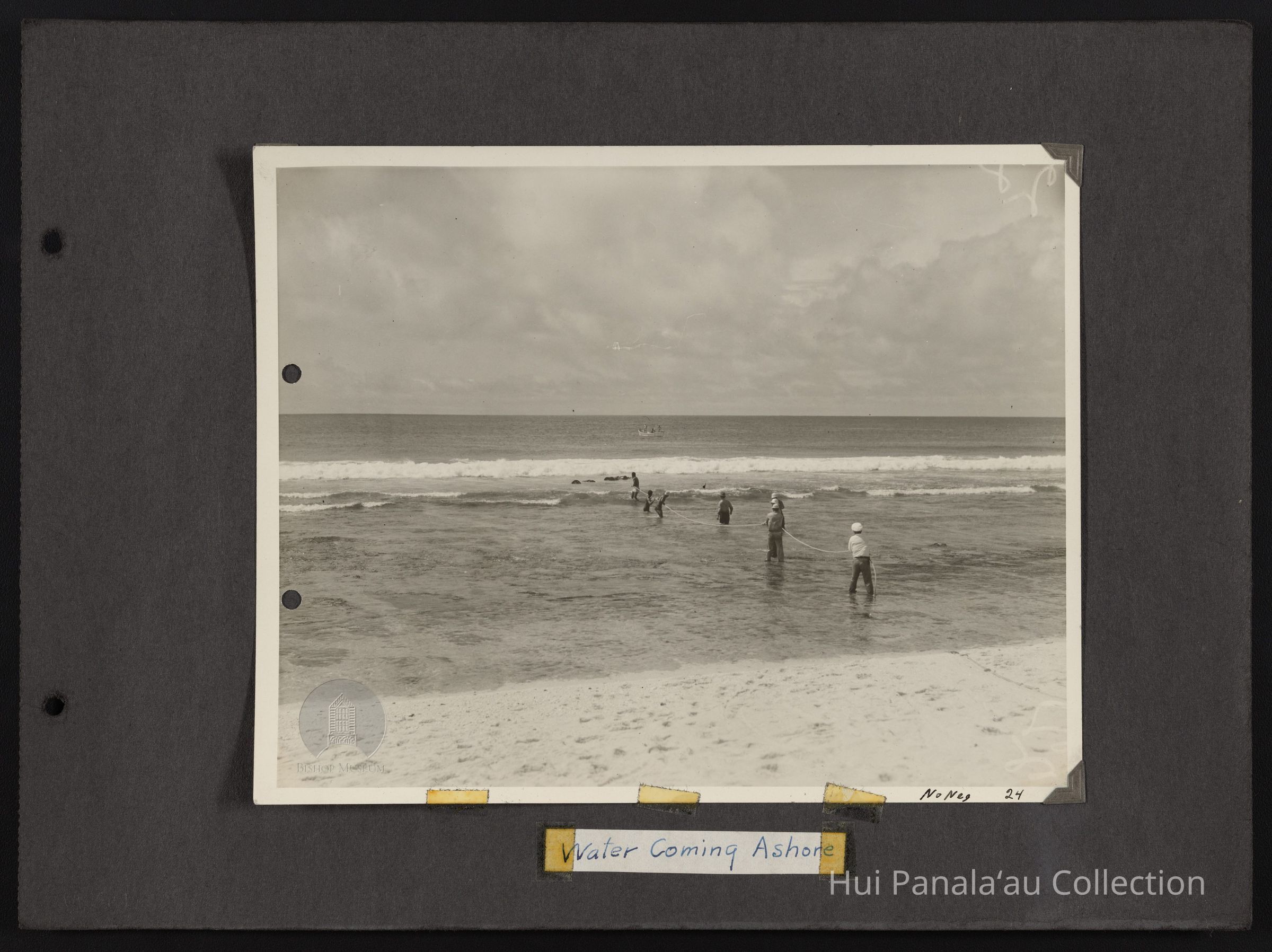 Image of 54 gallon drums filled with water being pulled onto the island for residentsScope and Content