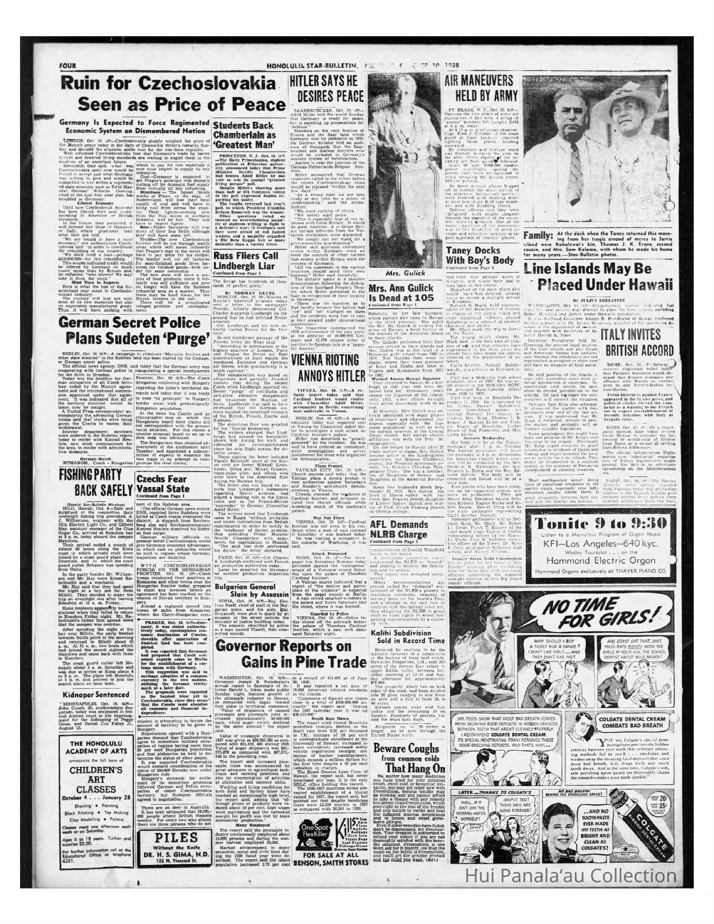 Newspaper: Honolulu Star-Bulletin, Oct 10, 1938. Politics of the idea of citizenship surrounding occupants of Line Islands as well as Guam and American Samoa.Publication Details