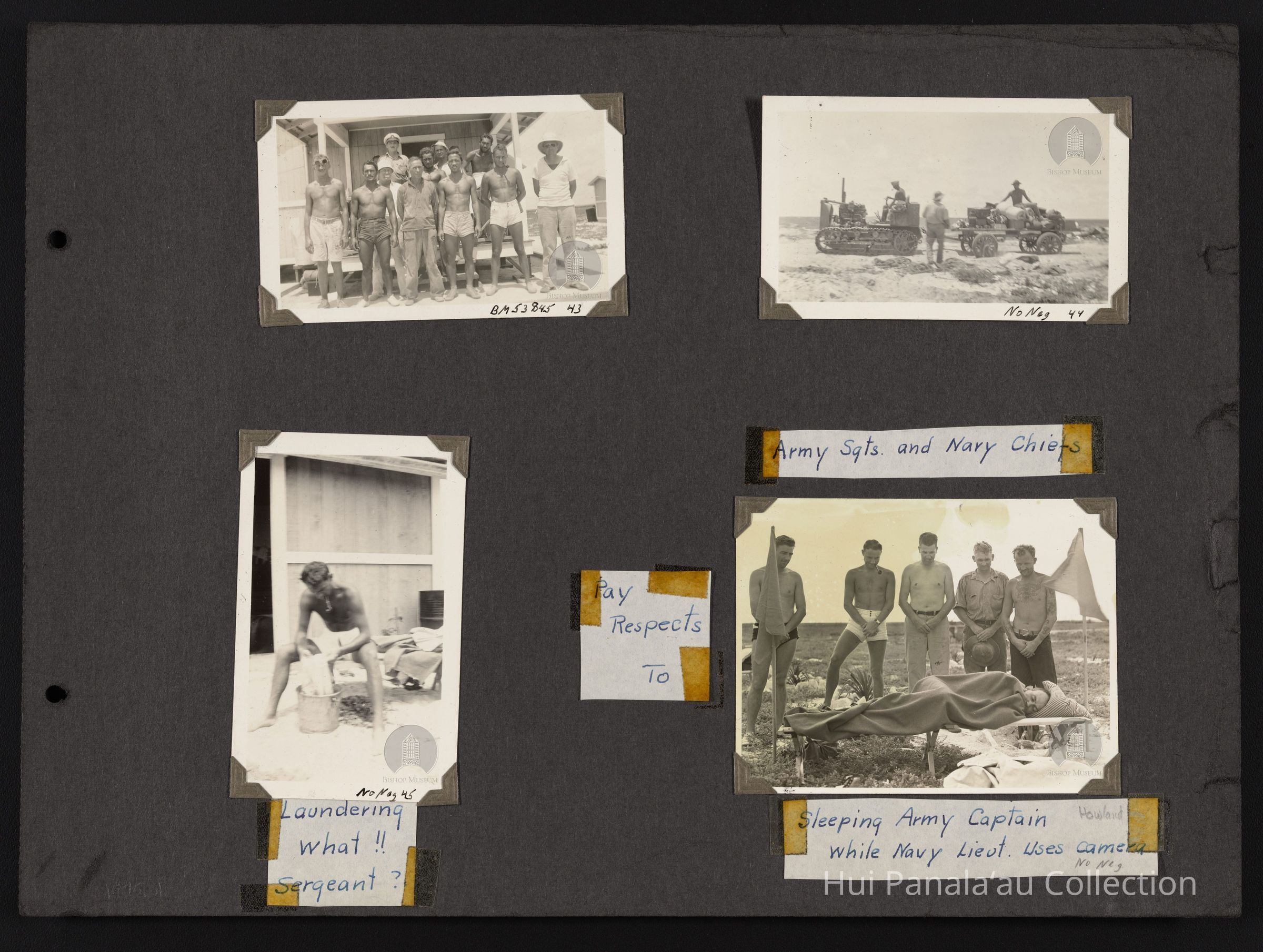Laundering What!! Sargeant?...Army Sgts. and Navy Chiefs... Pay Respects To... Sleeping Army Captain while Navy Lieut. Uses camera