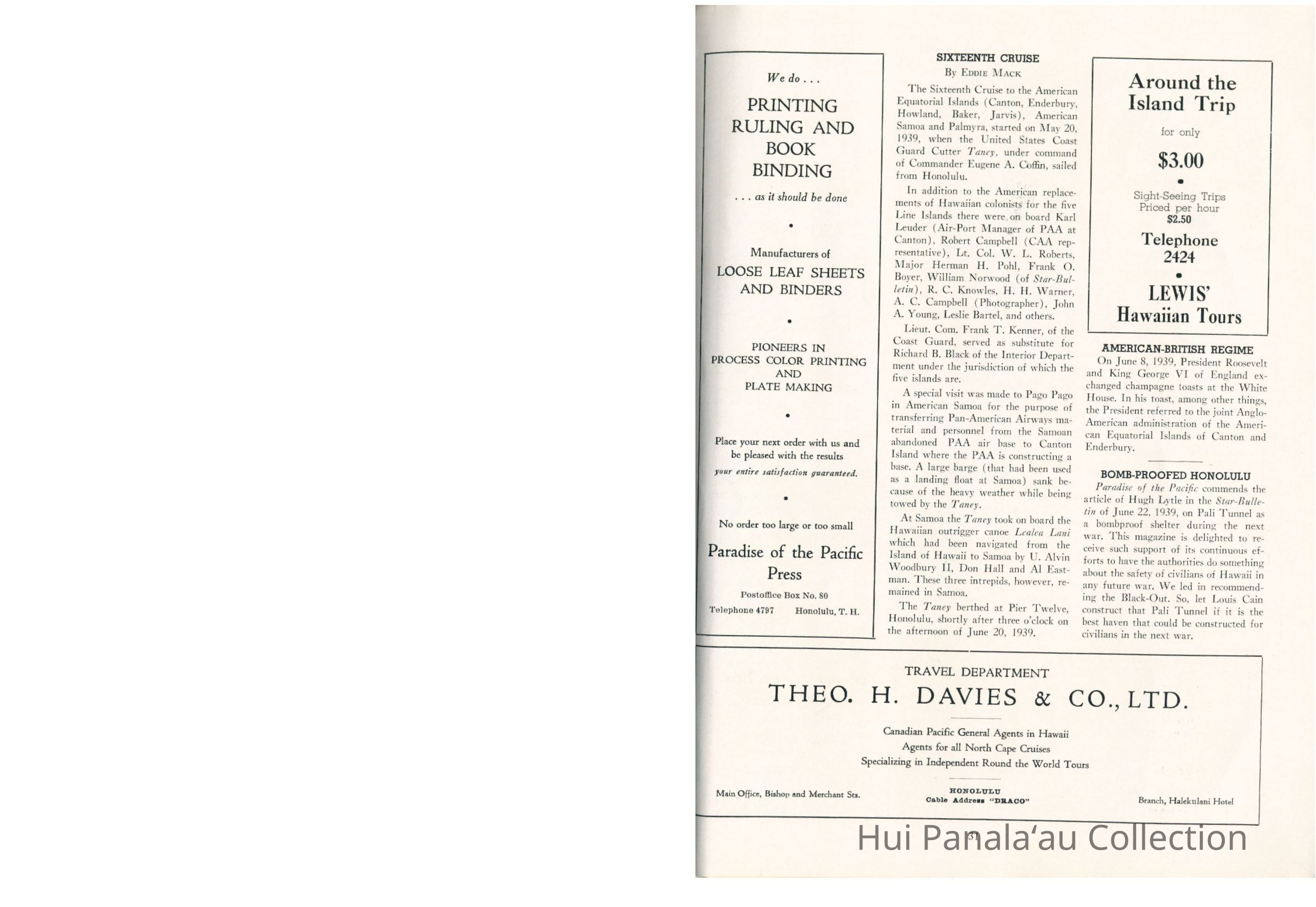 Magazine article published in the July 1939 issue of the Paradise of the Pacific.