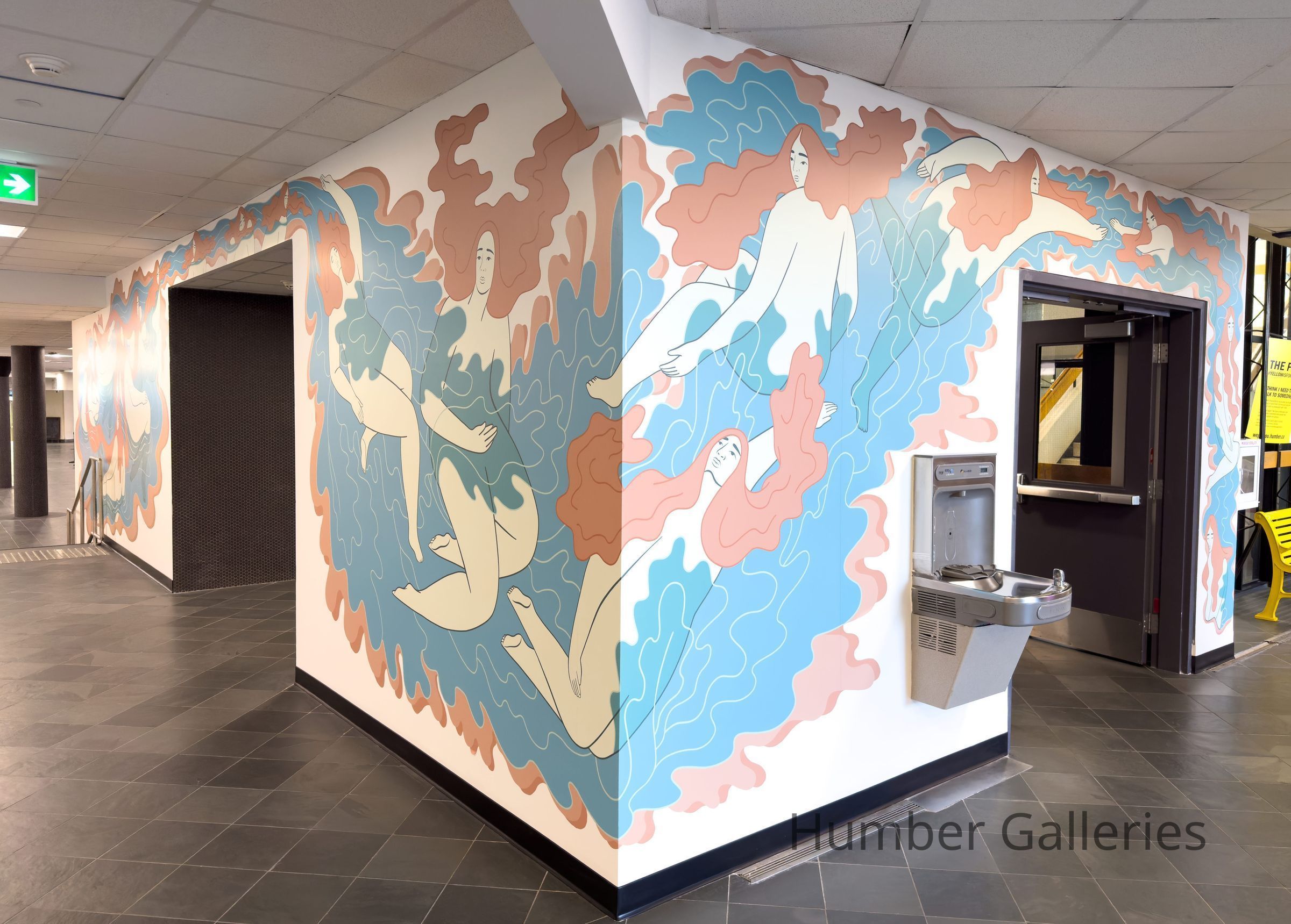 Ness’ mural explores the theme of sustainability through the lens of water's transformation and its profound connection to the human body. It traces the journey of water as it transitions from a vast body to waves, tides, and finally to air, illustrating the seamless interplay between these forms. The figures depicted are intertwined with this evolving water, their flowing hair symbolizing the continuous bond between humanity and the water that sustains us. This artwork reflects the vital role of water in both our internal and external worlds, emphasizing our deep, intrinsic connection to this essential element.Artwork Details