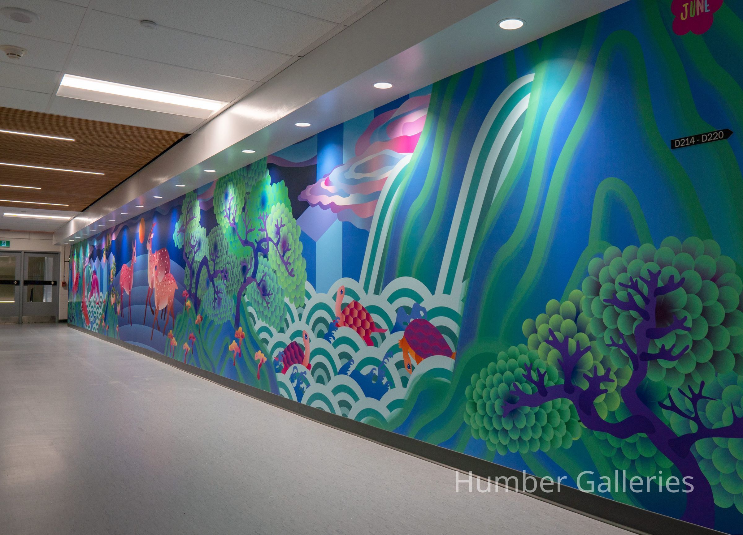 My painting practice is founded on my connection to the spaces around me; my love of the natural and urban environments and folk arts in Korea; the homeland where I was born and raised. My paintings are imbued with the symbolic forms and language of Korean cultural heritage, re-imagined in response to the contemporary context of my lived experience. My images create an imagined utopia using the various symbolisms and motifs from Korean folk art.