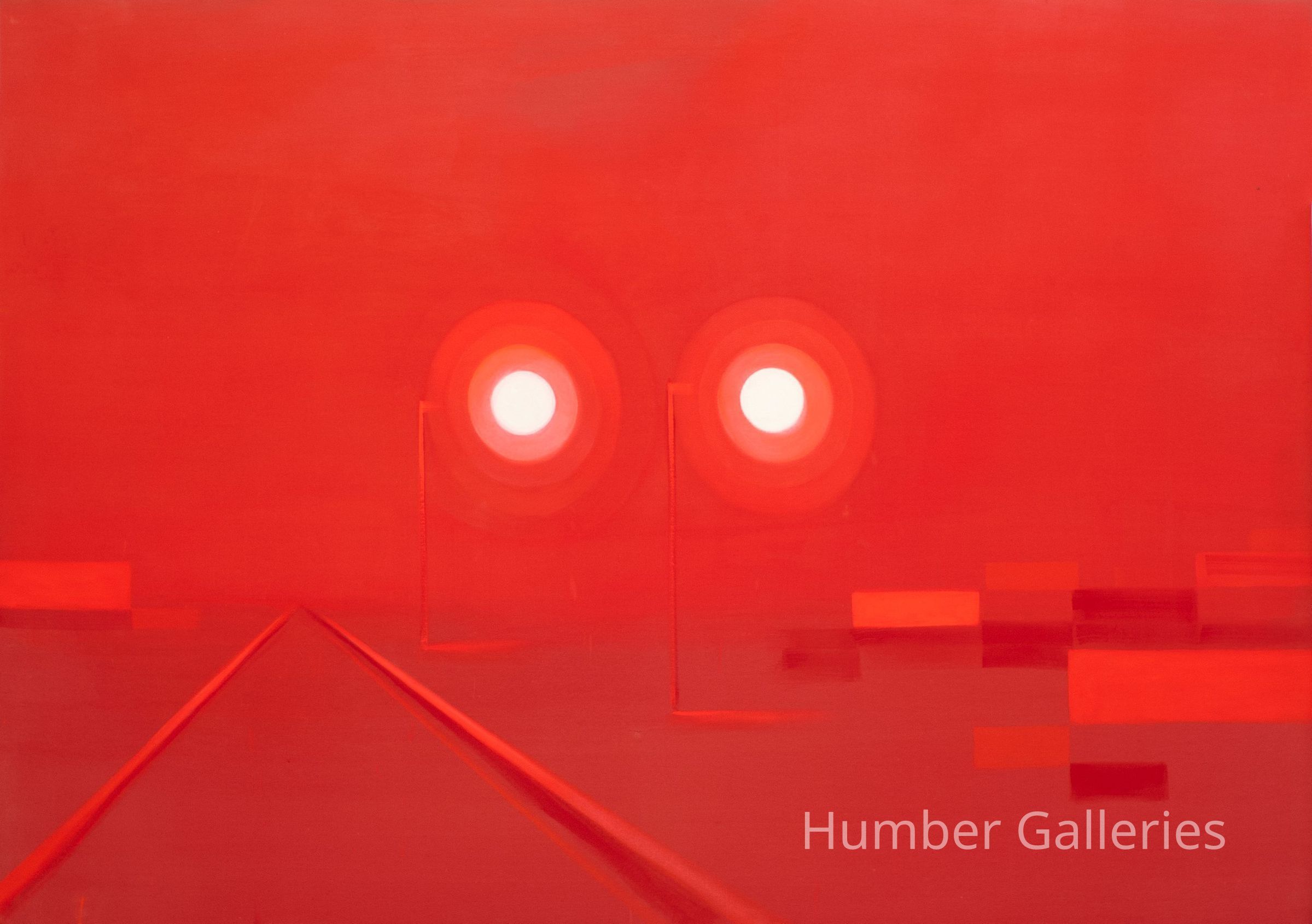 This work forms part of Koop’s Green Zone installation, which draws imagery from news broadcasts of the war in Iraq, distilling these arresting visuals into a myriad of individual pieces that simplify the images into their most basic forms. Infrared - Green Zone simplifies the imagery of warfare into vibrant, violent planes of red, the luminous lights in the centre of the composition challenging the viewer like a pair of omniscient eyes. The work and its accompanying installation challenge the viewer to contemplate the ways in which media has desensitized people to images of violence, draining them of emotional or moral impact through endless replication and repetition.Collection
