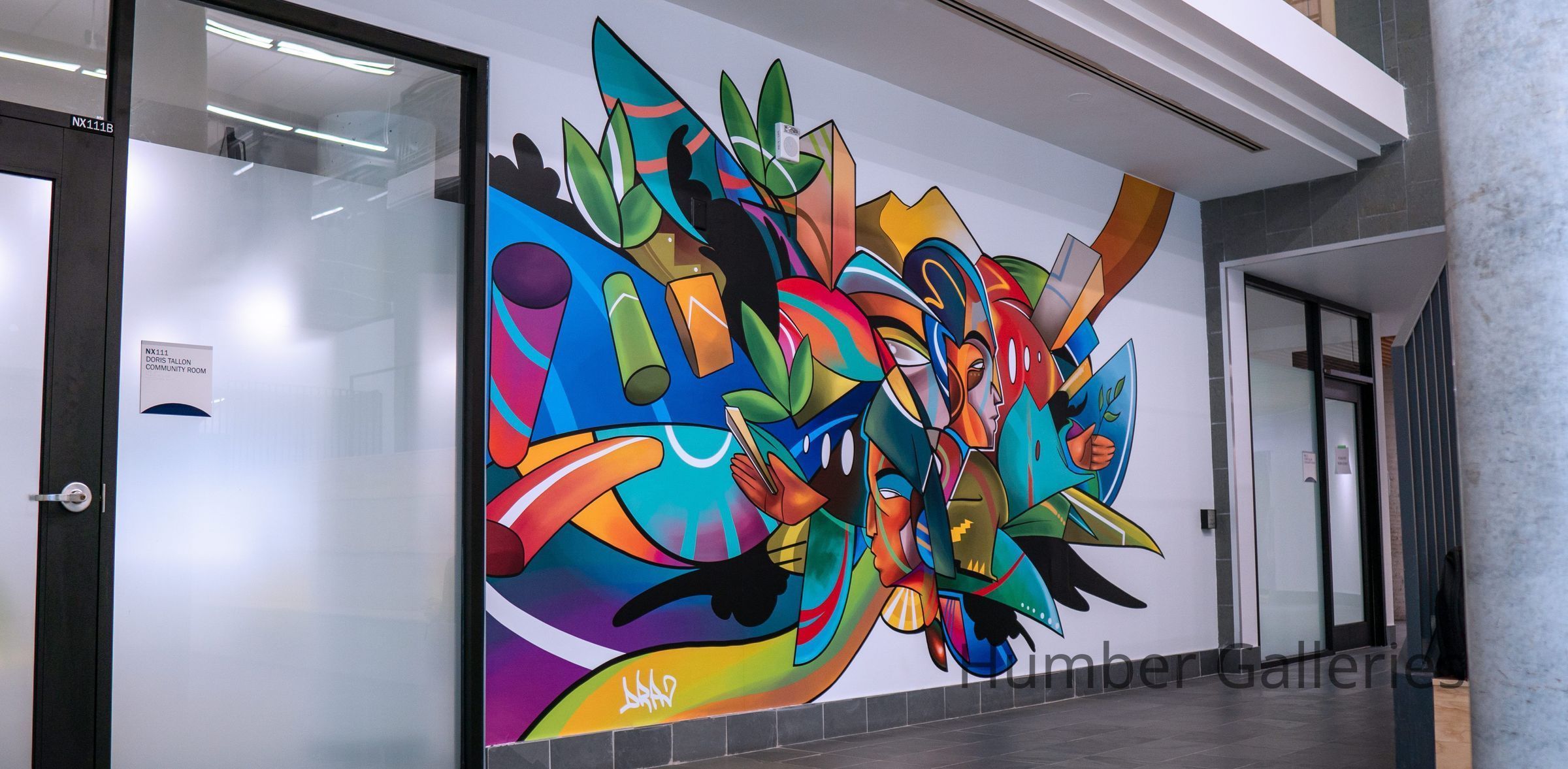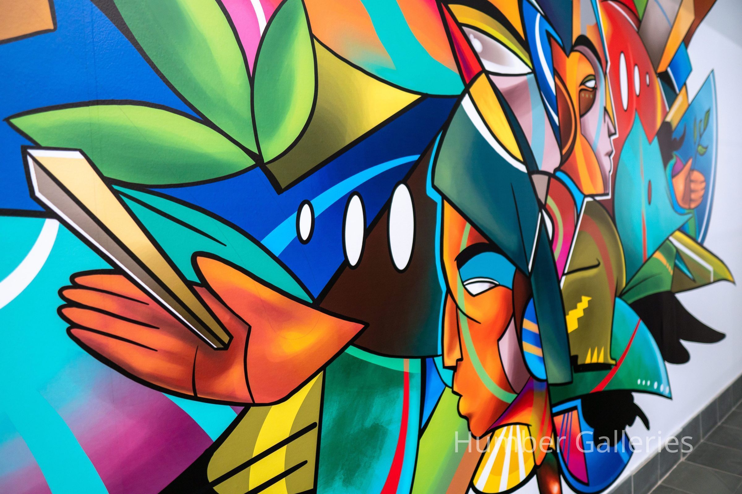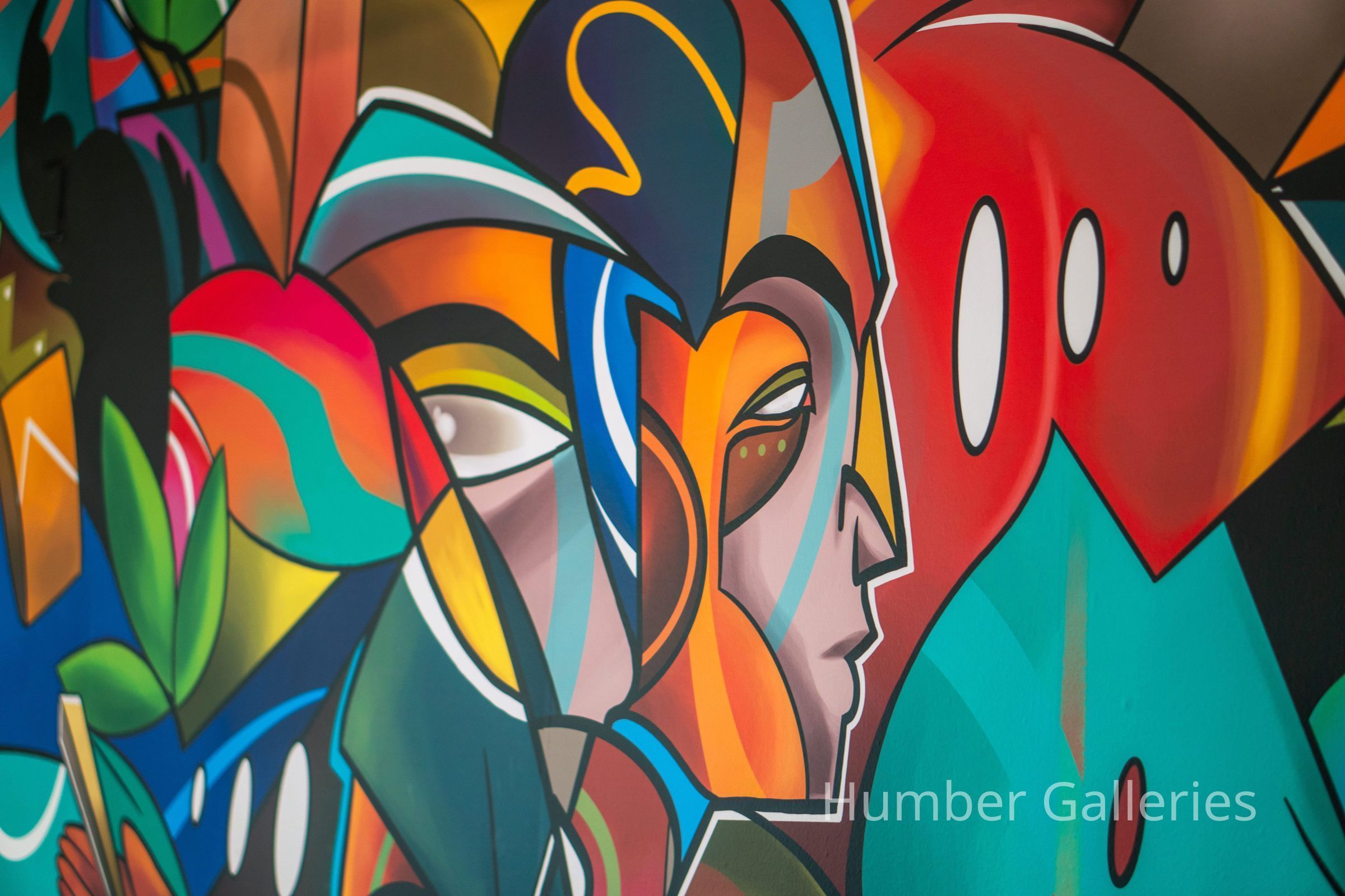 Assefa developed the style used in this mural over 15 years, informed by traditional Ethiopian iconography & graffiti, and reimagined through the lens of Afrofuturism.Artwork Details