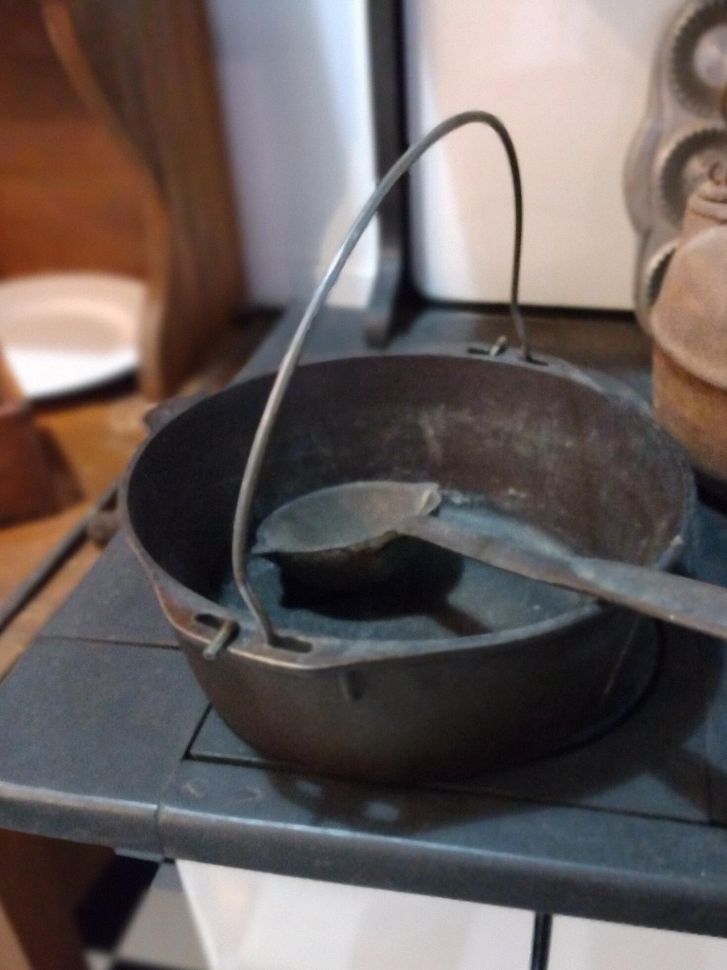 Cast iron stew pot. Cast iron spoonCollection