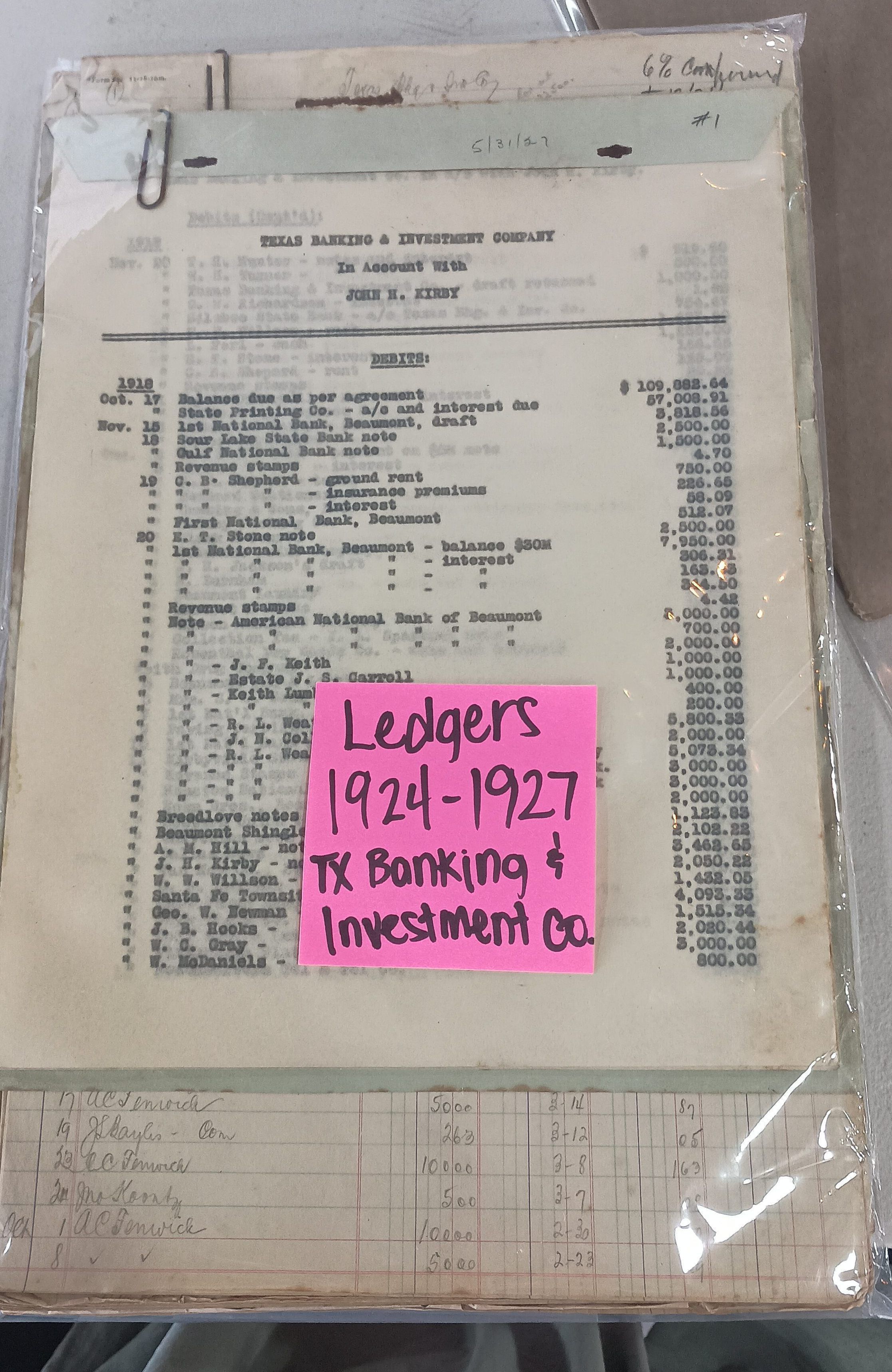 1924 - 1927 Ledgers Texas Banking and Investment Co. - John H. Kirby AccountsTags