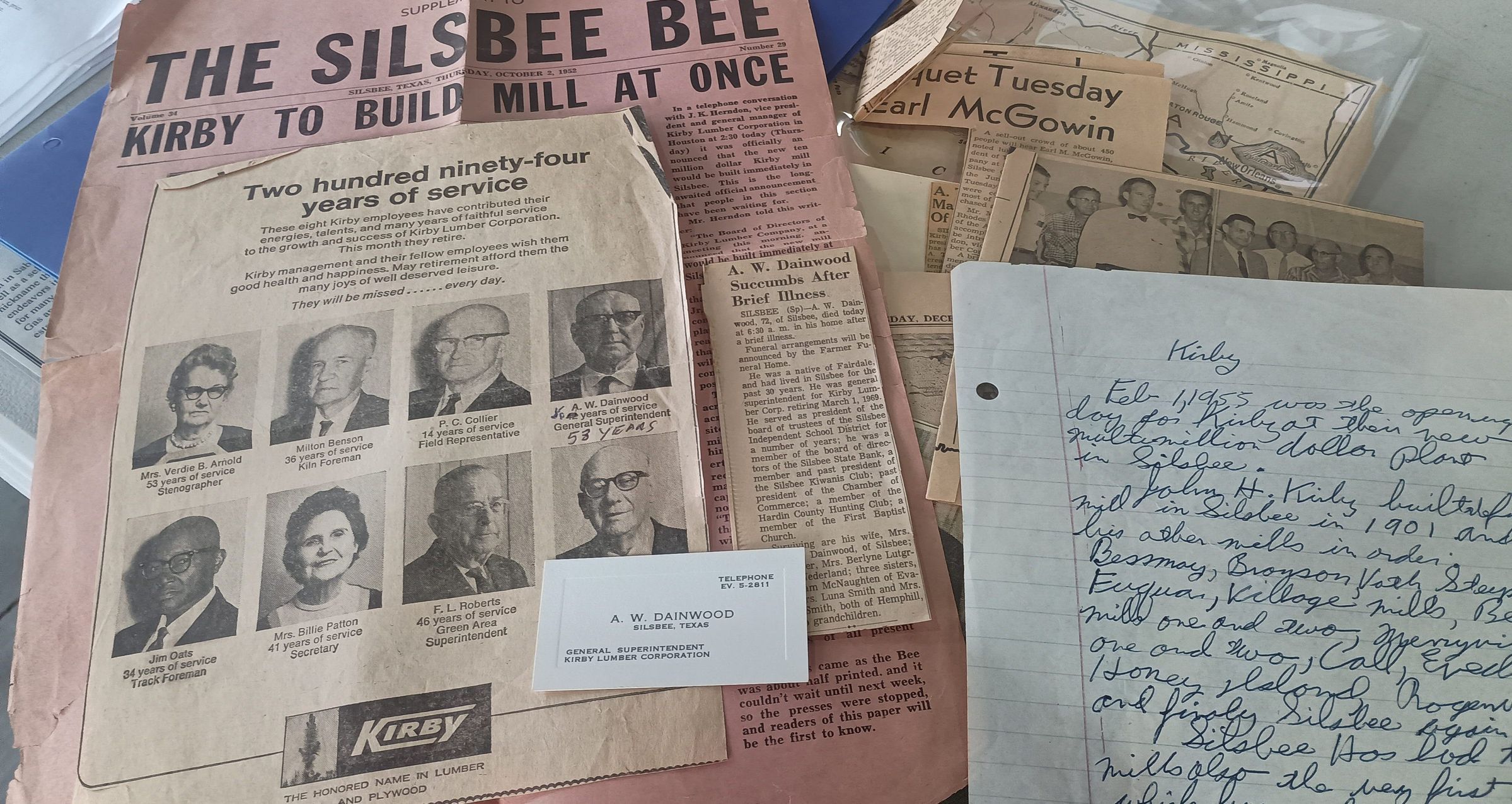 Silsbee Bee, John Henry Kirby, Letter w/Envelope, Newspaper Clippings, Dainwood, A WCreated By