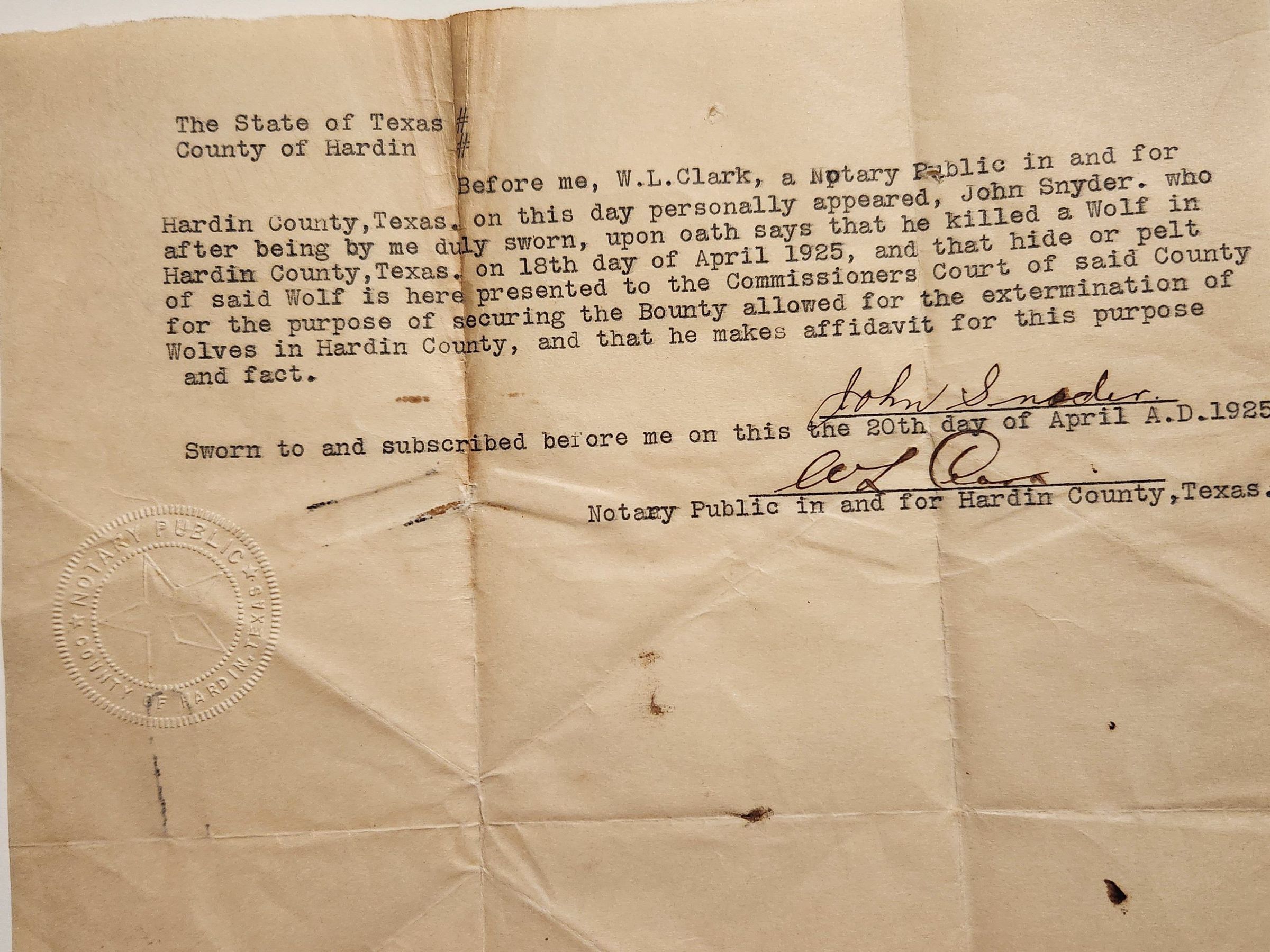 Affidavit of Wolf Kill by John