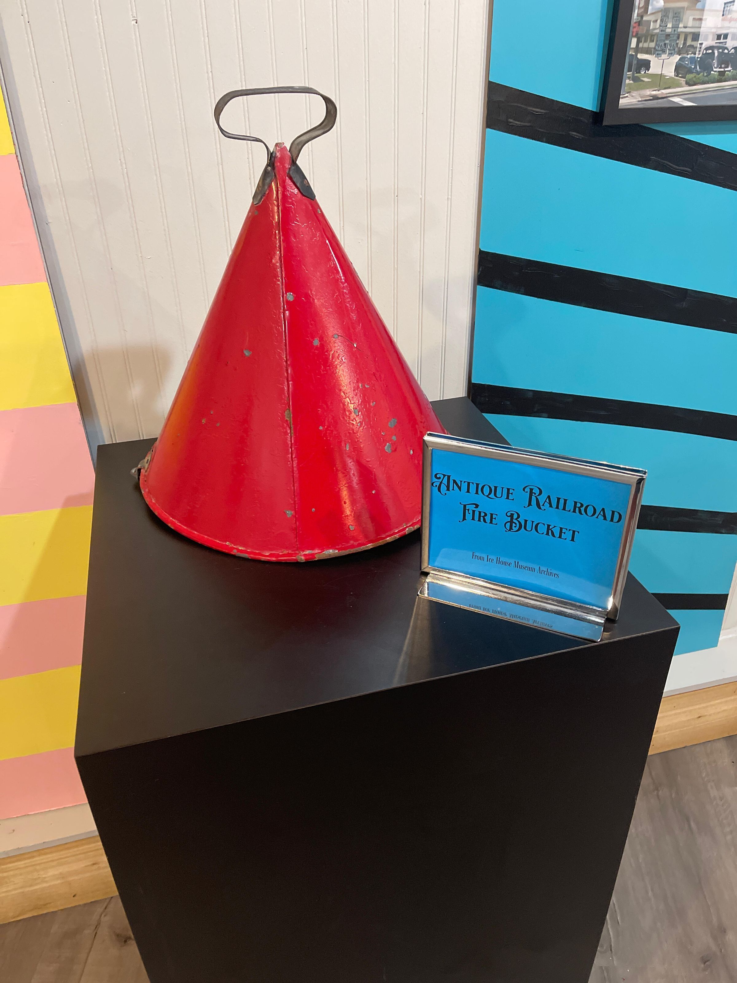 This fire bucket was used for putting out fire for trains and railroads.Collection