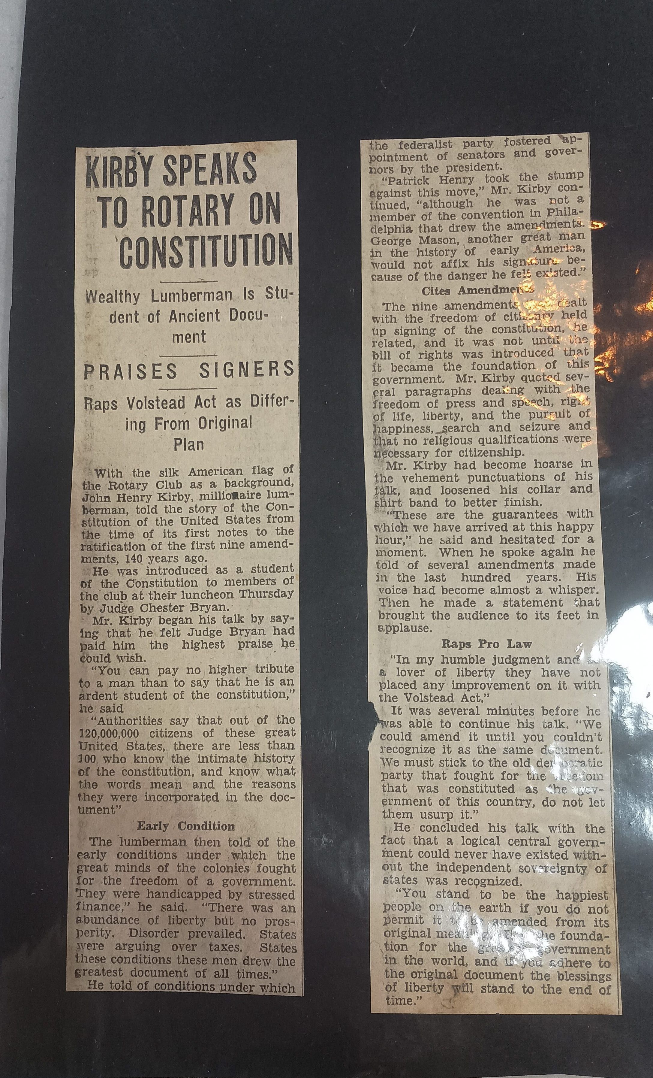 Article on Kirby Speaks to Rotary on Constitution , no date or origin