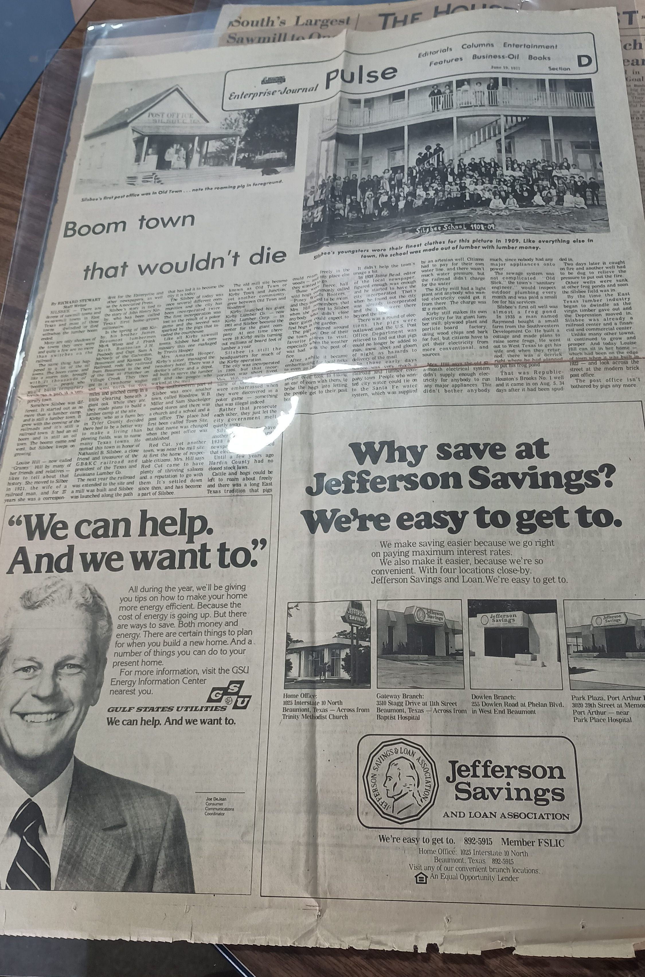 Beaumont Sunday Enterprise-Journal dated June 19, 1977 - listing Silsbee as the Boomtown that wouldn't dieCreated By