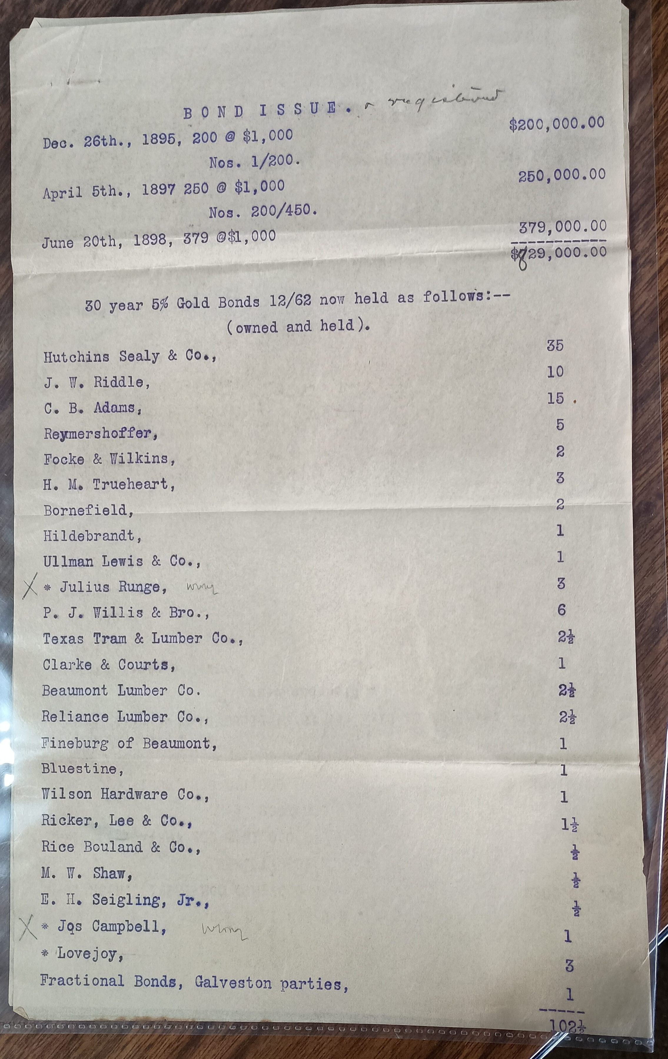 Bond Issue with no company name listed - found in Kirby papers - dated with last date of June 20, 1898Created By