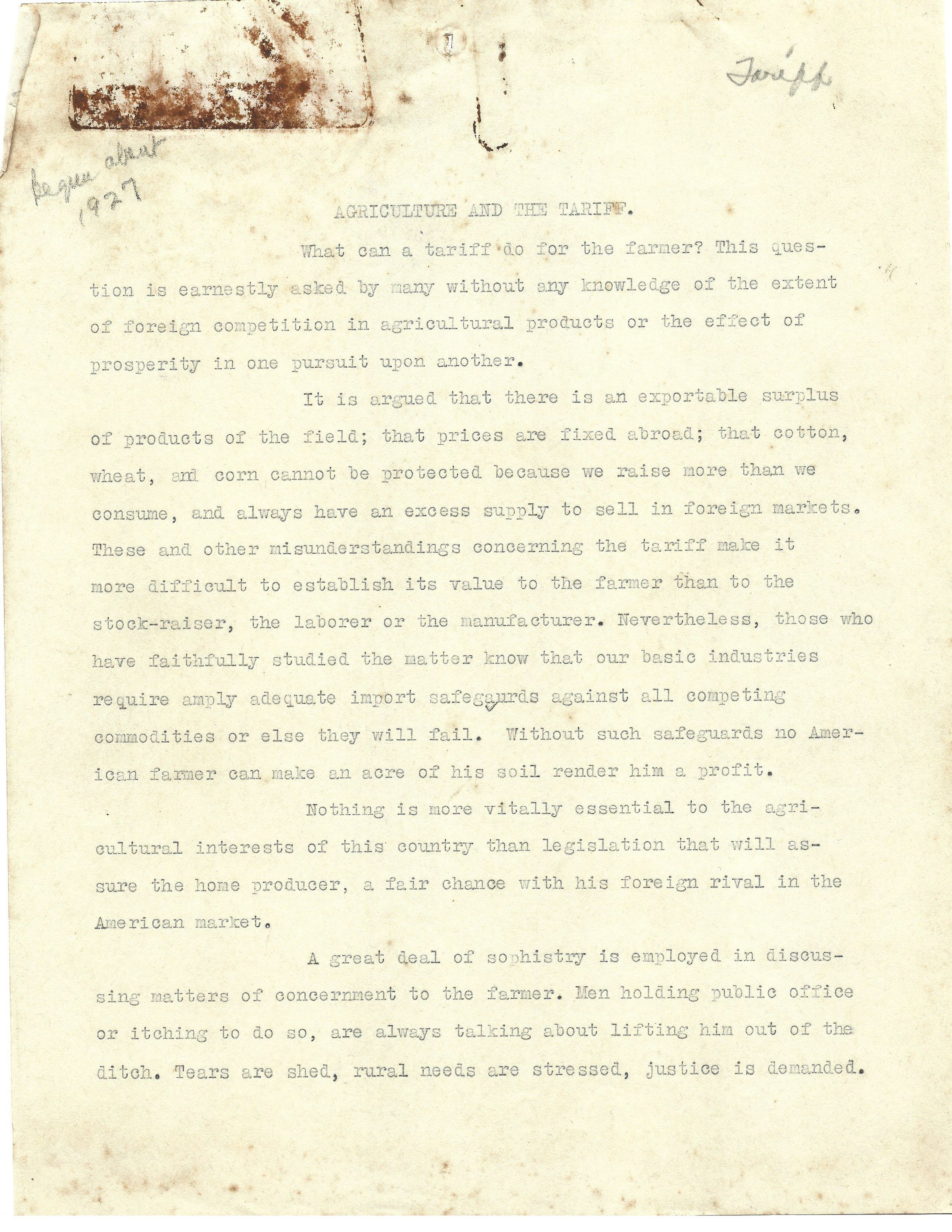 Book Draft by John H Kirby - "Agriculture and the Tariff"Tags