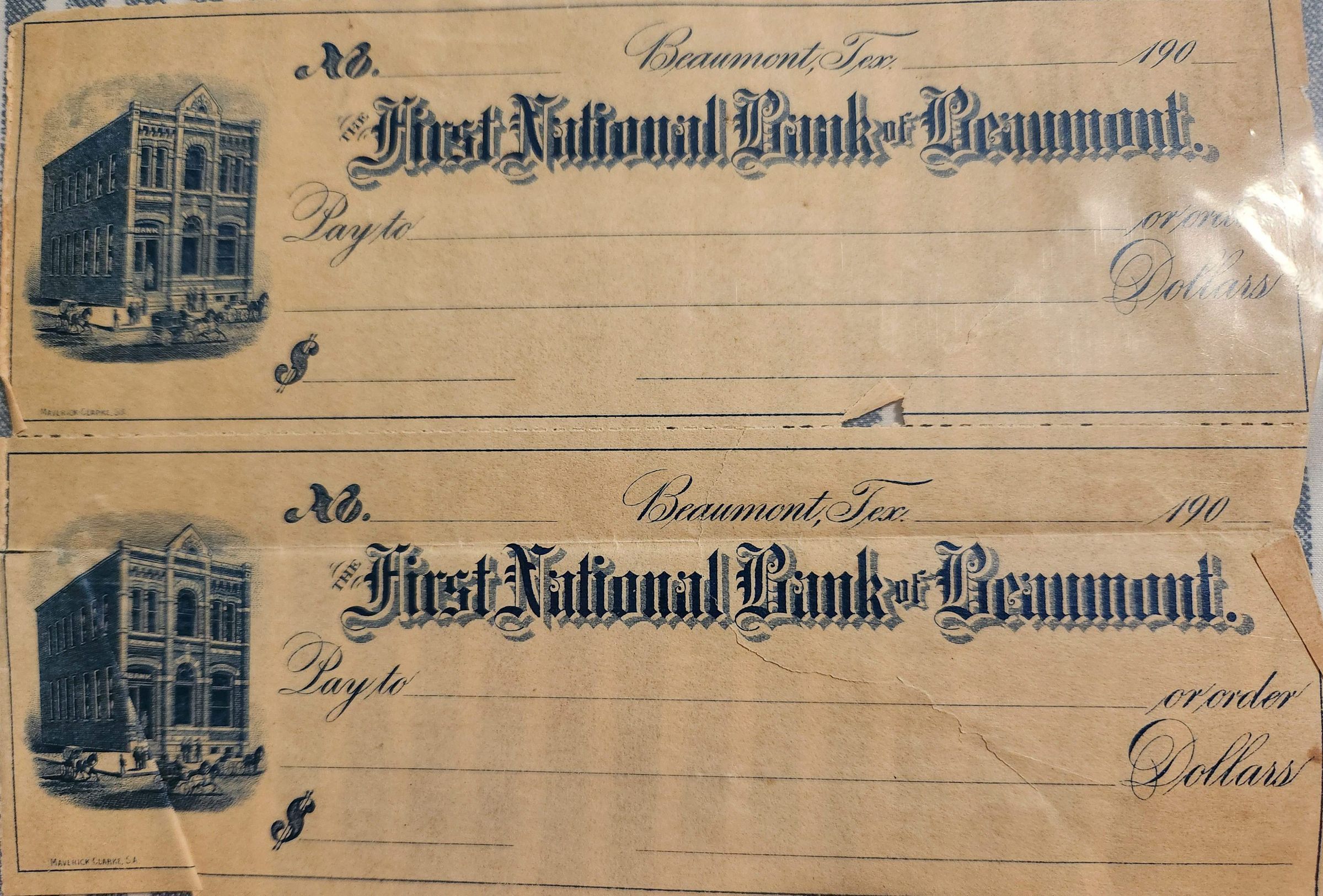 Checks from First National Bank of Beaumont - Blank