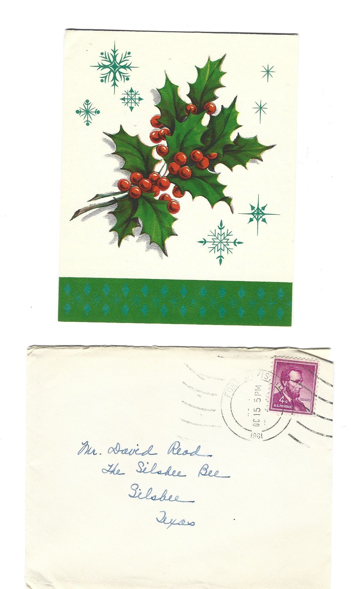 Christmas Card to David Read from Lucy Miller December 1961