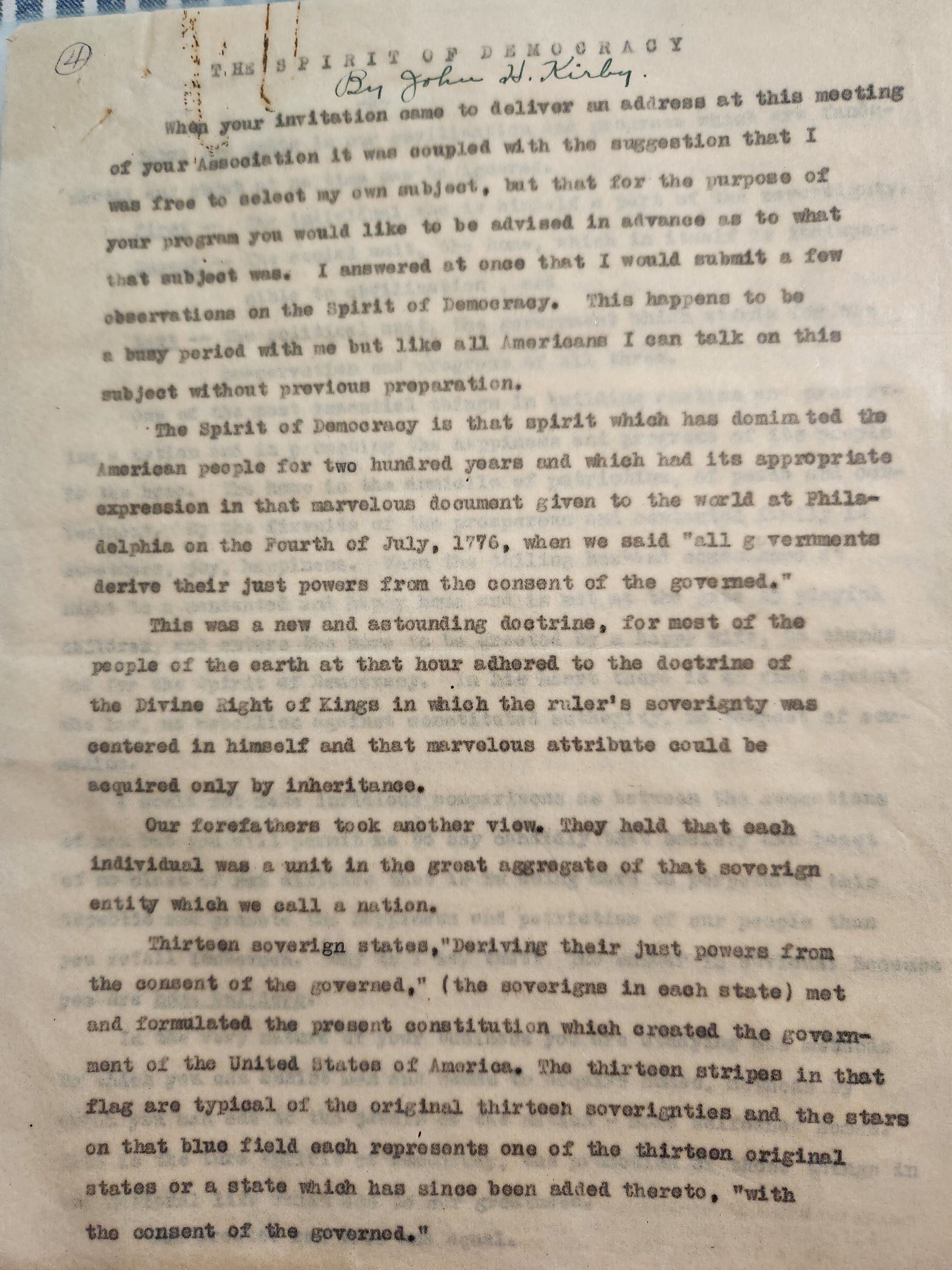 Copy of Speech by John H Kirby - "The Spirit of Democracy"Tags