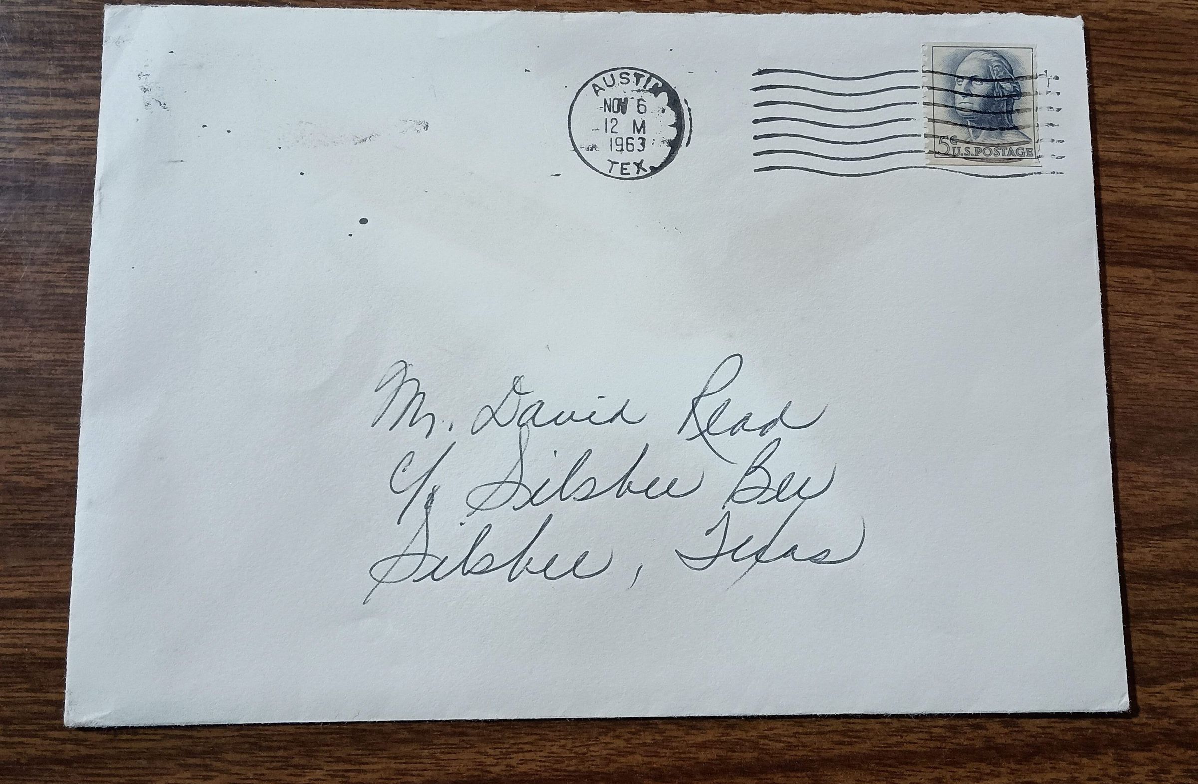 Envelope to David Read from The State Democratic Executive Committee, 1010 Lavaca, Austin TX - Postmarked November 6, 1963Collection