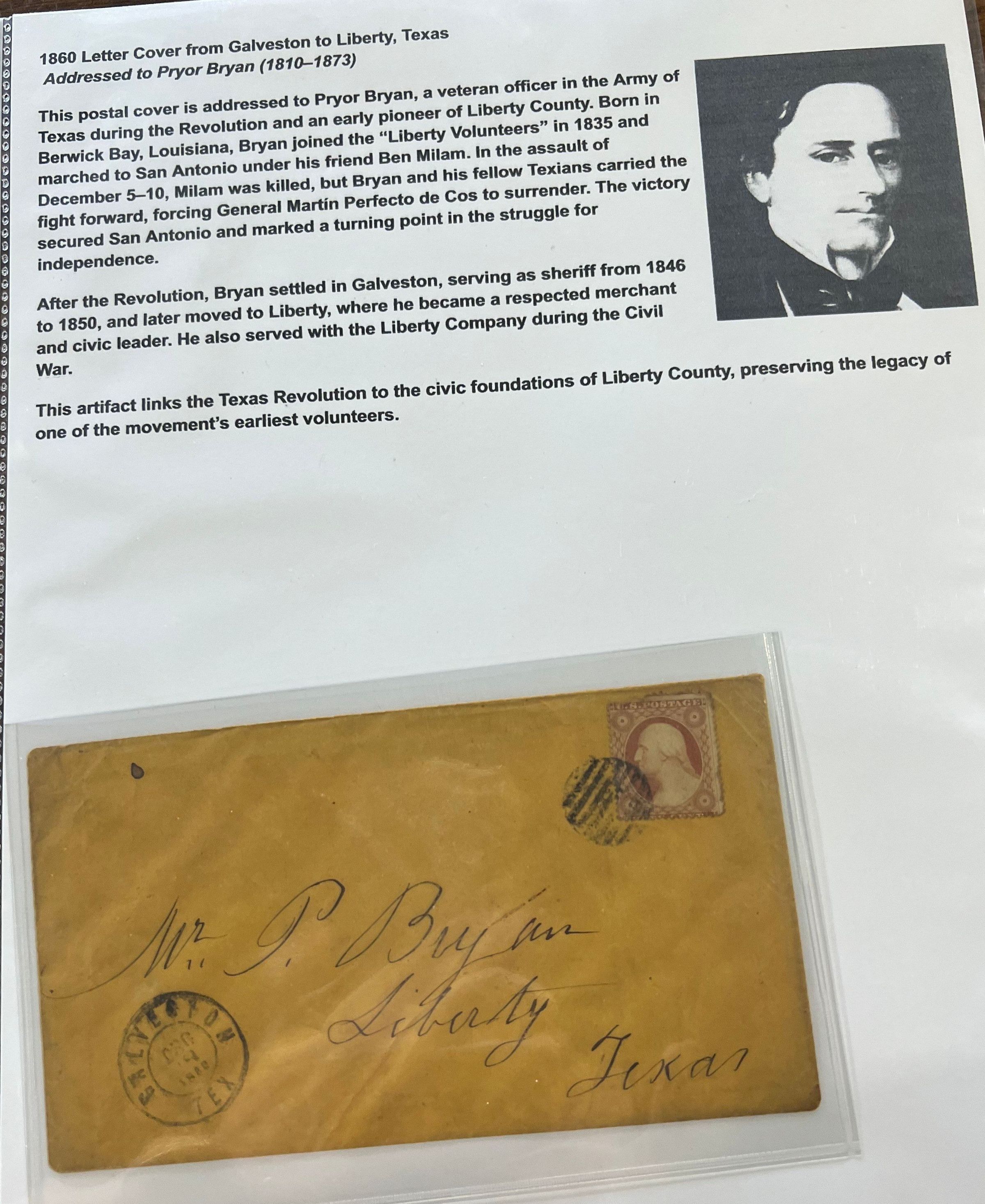 Envelope to Pryor Bryan, Letter Cover Dewitt Quinton Lodge, Letter to Thomas B Huling - Texas Revolution Exhibit MaterialsTags