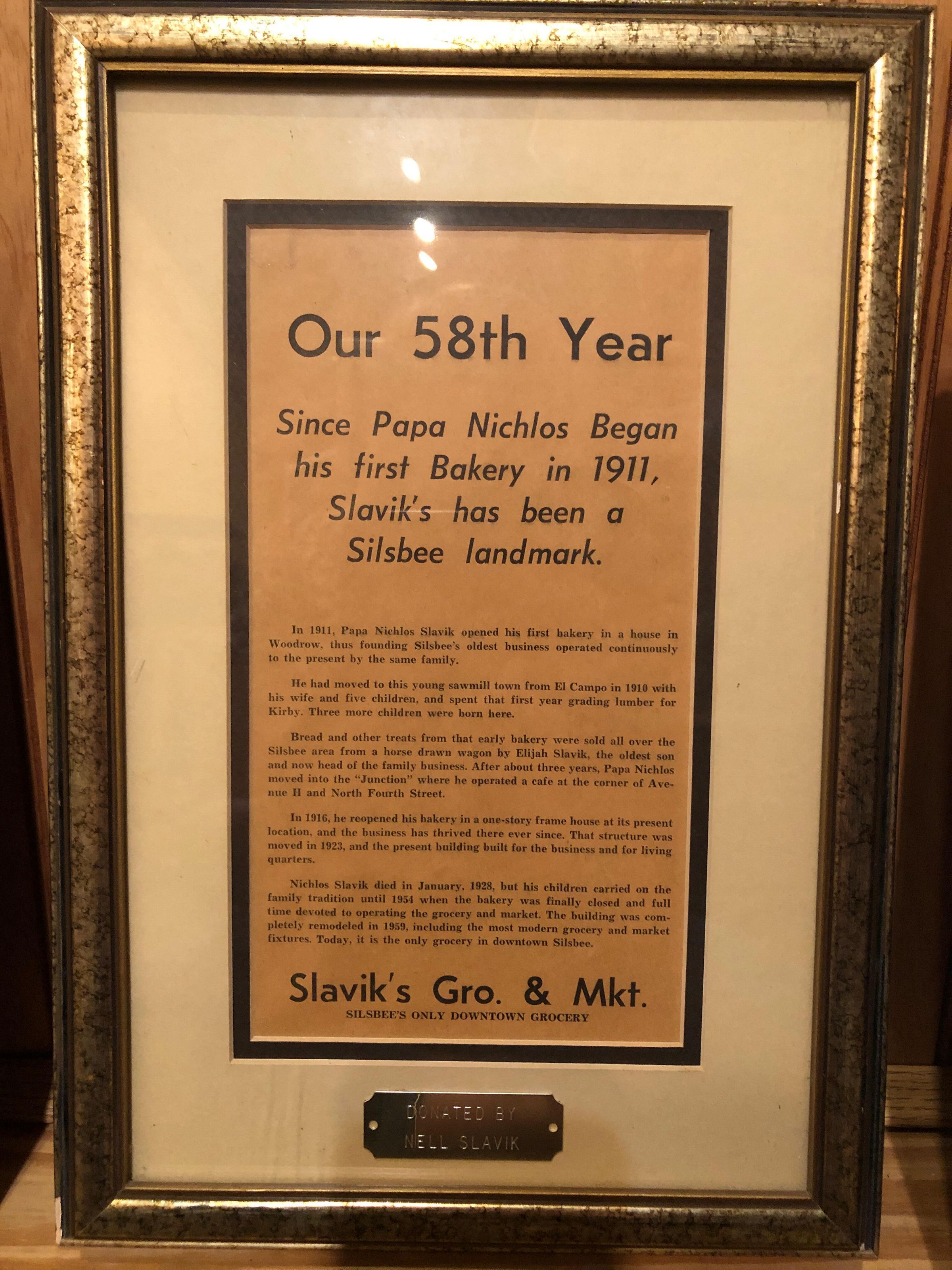Framed article: 58th Year of Slavik’s Gro. & Mkt.Condition