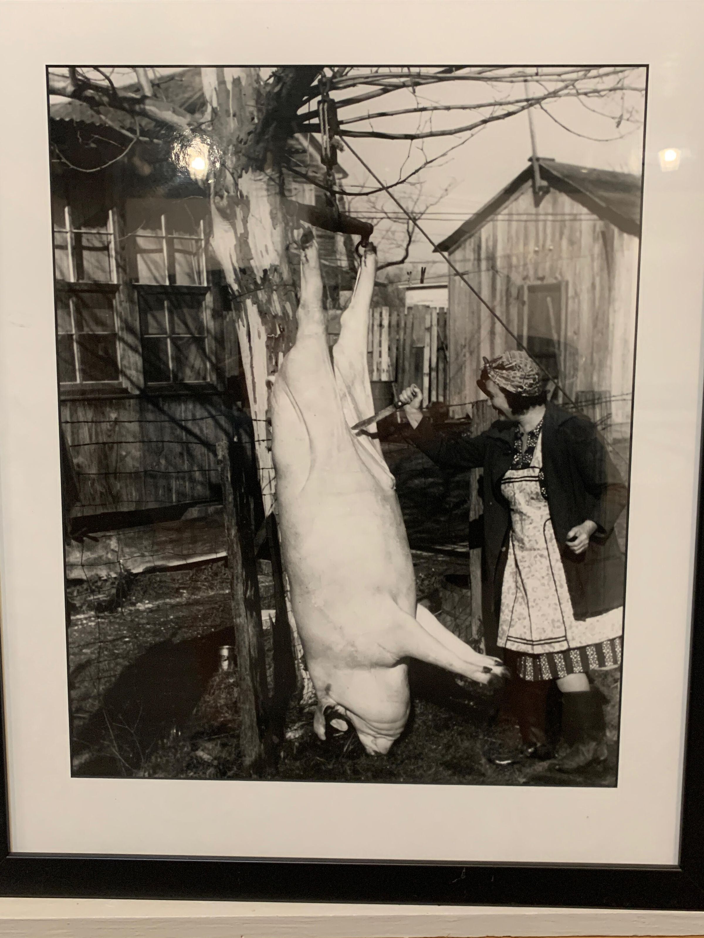 Photograph #24 1940 photo of a woman field dressing a hog.Photograph Details