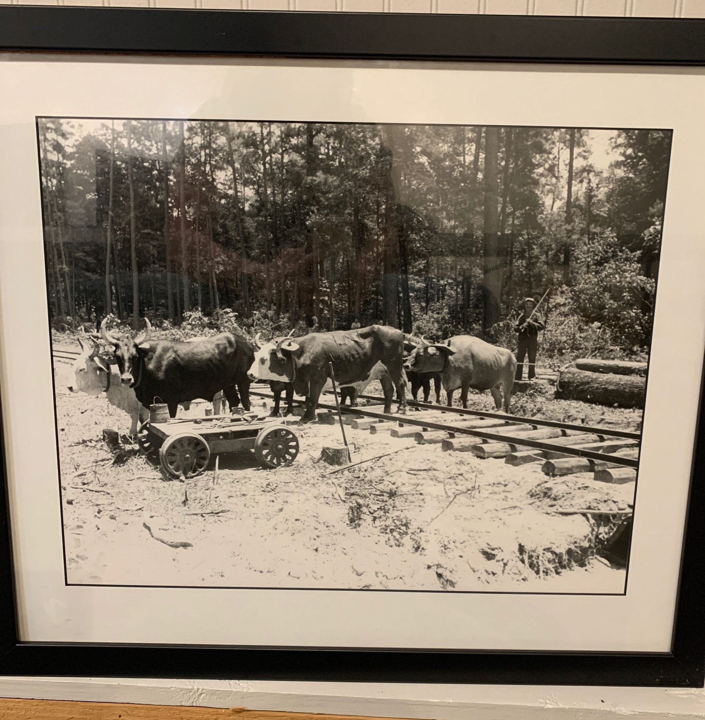 Framed Photo of T. Hinson, Driver of Bull Tram -Carter LumberTags