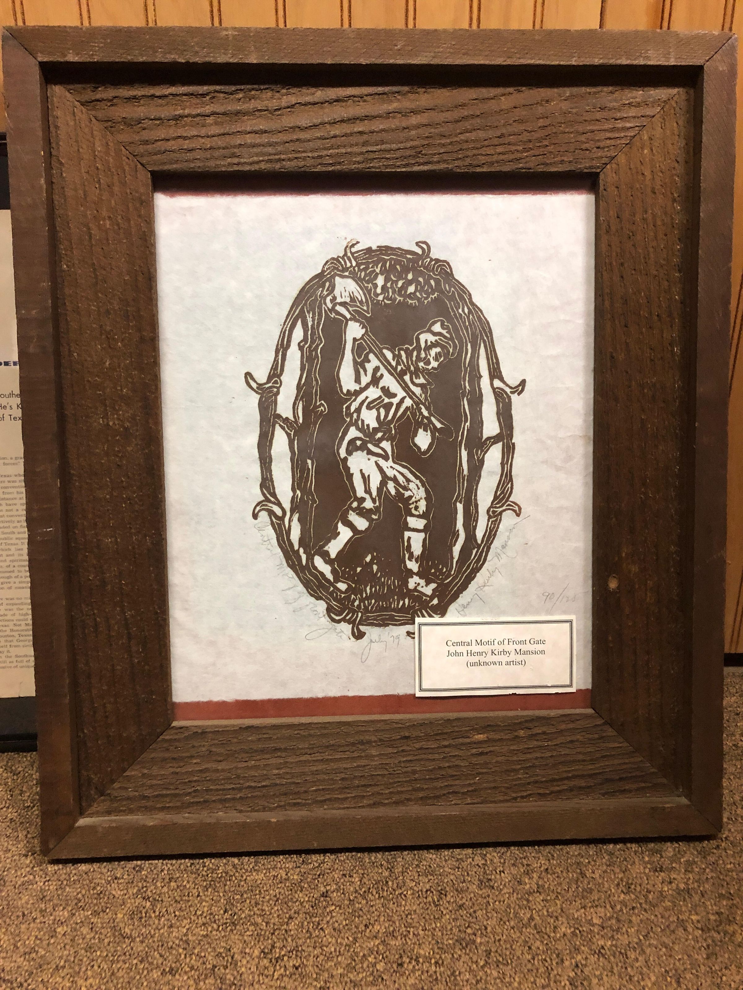Framed replica: Central Motif of Front Gate at John Henry Kirby MansionEntry/Object ID